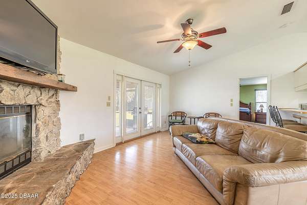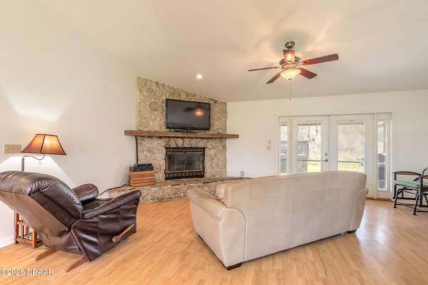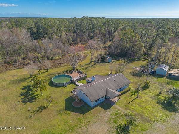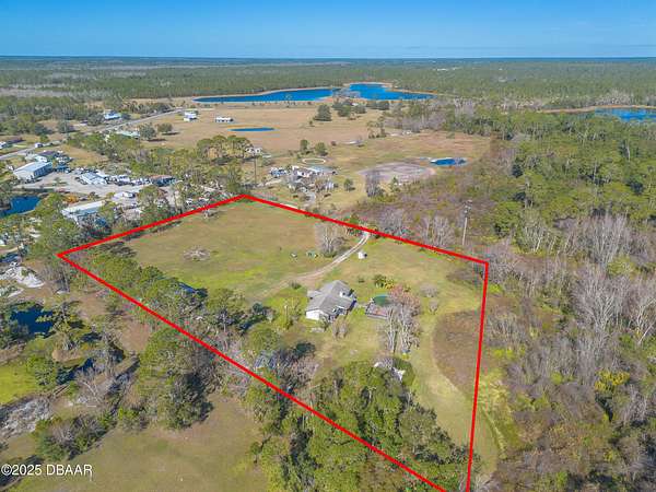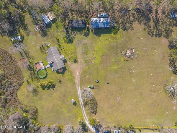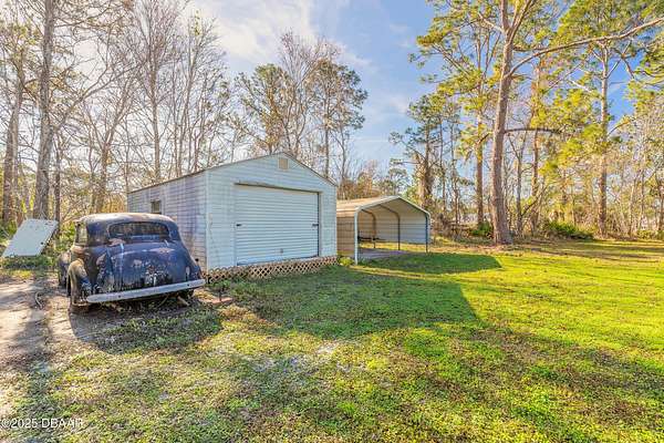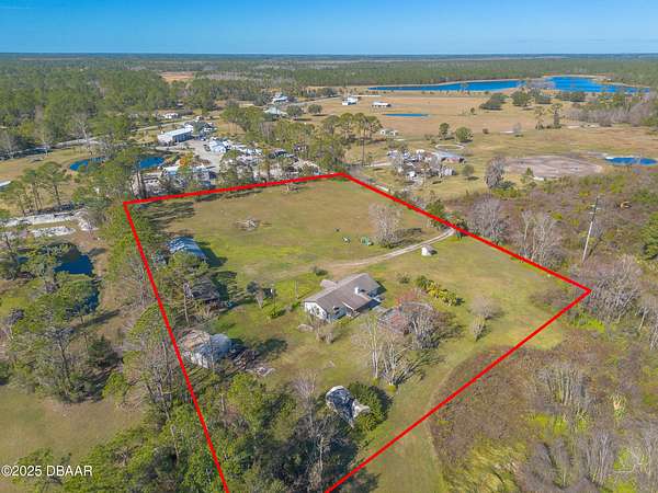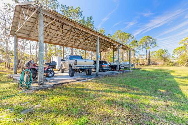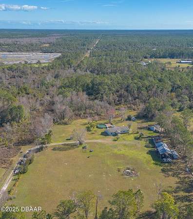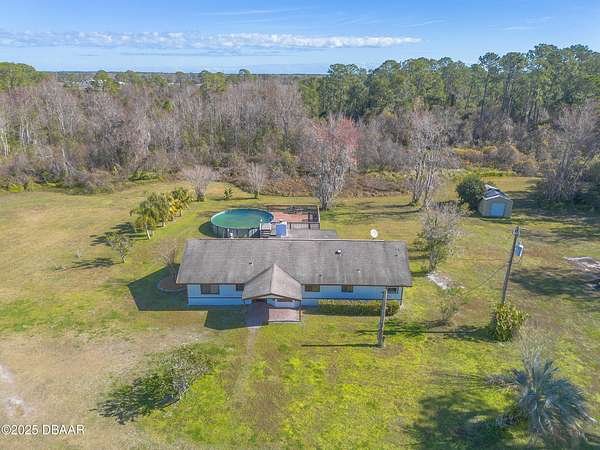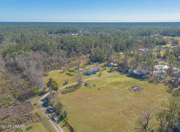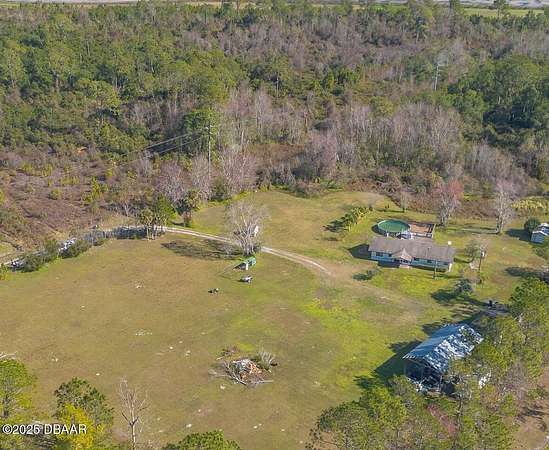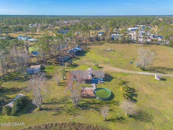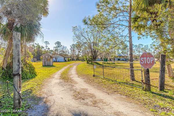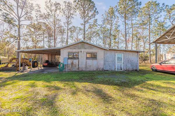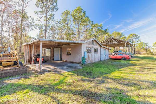 Motivated Seller. Escape to the tranquility of rural New Smyrna Beach with this charming 5.5-acre property that combines country living with convenient access to modern amenities. Located just 25 minutes from the beach and Sanford Airport, this property offers the perfect blend of privacy and accessibility. The 3-bedroom, 2-bathroom home features high ceilings, a split-bedroom floor plan, a cozy fireplace, and an interior laundry room. The spacious owner's suite includes a large walk-in closet and an updated en-suite bath, while the additional bedrooms also offer walk-in closets and generous space. While the home is solidly built and functional, it does need some updates to modernize it and bring out its full potential. The property is a dream for hobbyists, animal lovers, and outdoor enthusiasts. It includes a pole barn wired for a car lift, a workshop/garage with power, two carports, and a powered shed for ample storage. Additionally, there's an RV pad with 30-amp servic and its own septic tank. The land is beautifully graded and well-suited for horses, goats, chickens, or any other furry friends, making it ideal for a homestead or personal retreat. While offering the peace of rural living, the property remains close to essential conveniences like shopping, medical facilities, and grocery stores. Whether you're looking to create a hobby farm, store your RVs and boats, or simply enjoy the open space, this property has the potential to make your dreams a reality. With a little updating, this home could truly shine. Home is being sold As is. Don't miss this unique opportunity schedule your showing today!