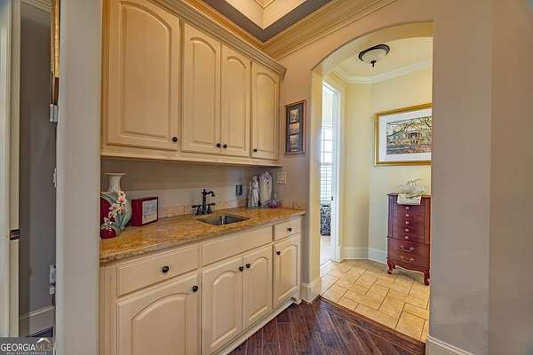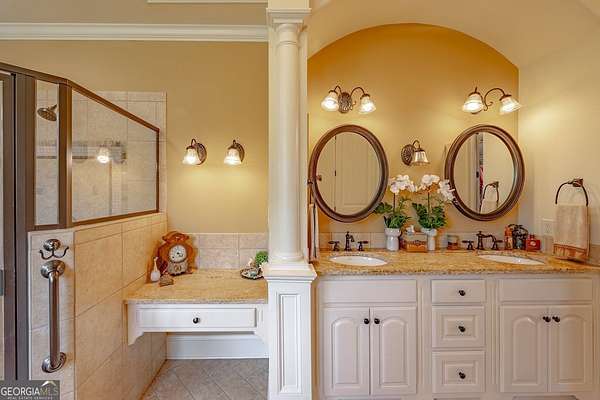- Beamed Ceilings, Bookcases, Double Vanity, High Ceilings, In-Law Floorplan, Master On Main Level, Separate Shower, Soaking Tub, Split Bedroom Plan, Tile Bath, Tray Ceiling(s), Vaulted Ceiling(s), Walk-In Closet(s), Wet Bar