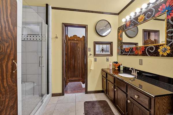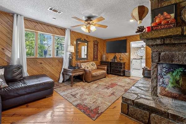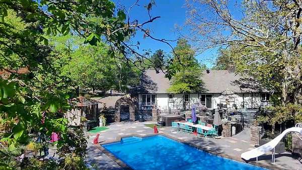 Spacious 5 bedroom, 3 full + 2 half bath home with 4,036 sq ft on 3.49 private acres in Hot Springs, AR—ideal for large families, multi-generational living, or investment as a proven income-producing short-term rental/Airbnb. This cozy, warm, and inviting home features natural light, large living areas, and a finished walkout basement with wet bar, game room, and entertainment space. Step outside to a resort-style backyard oasis with in-ground pool, outdoor kitchen, covered patio, multiple seating areas, fountains, beautifully landscaped grounds along with a play are for children and full basketball court with seating—perfect for outdoor living and entertaining. Enjoy peaceful, private acreage with room to expand, garden, or add recreation. Located near Lake Hamilton, Oaklawn Racing Casino Resort, downtown Hot Springs, shopping, dining, hiking trails, and national park attractions. This property offers luxury, privacy, and convenience—perfect as a primary residence, vacation home, or turnkey rental investment opportunity.