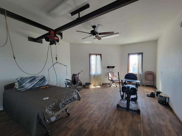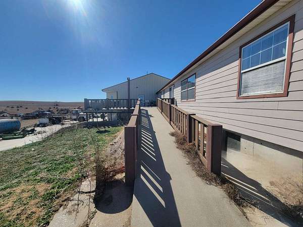 601 S Tiger Ave. Morland, Kansas 67650 This country property was previously an Oilfield Trucking Company with home and shop. This 4.5 acre unique country property has endless potential. The property consists of a large home with 2,943 Sq Ft main floor and a full 2,943 Sq Ft basement. This is a five bedroom, three bath home. The home is ADA Handicap Assessible. The previous owner has installed overhead trolley slings for access around the house and to the addition and large tub. The main floor includes the open concept kitchen, dining and living room. It has a family room 5 bedrooms, three bathrooms, laundry room, office and others. All appliances are included. There is a walkout basement with stairs to the main house. The basement is plumbed for a fourth bathroom. The walkout carport is 43' wide x24' deep. The 100x60x30 shop is attached to the addition and can be accessed by door off the house or ramps without going outside. The shop has three large aircraft doors. The rafters are a very sturdy 2-7/8 drill pipe. The shop has a heated floor throughout. It is wired for 220V. There are mezzanines on three sides. The air compressor and hester are included. There is an office in the shop corner. The exterior east side has a 20' concrete slab across the front. This property is a 4.5 acre plot. LISTING PRICE: $220,000