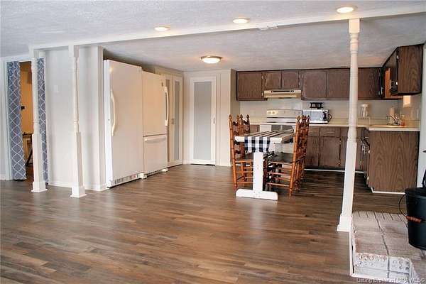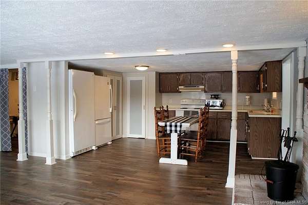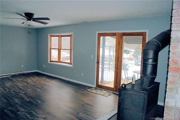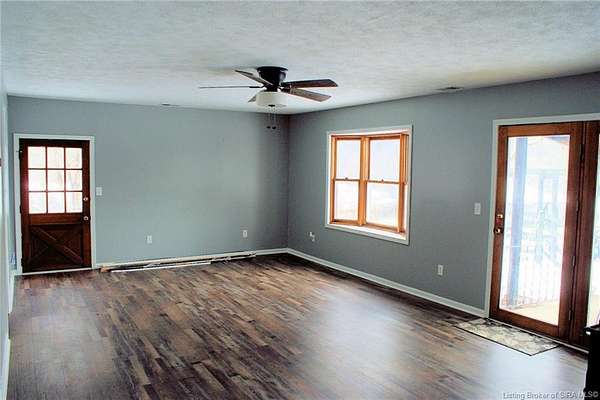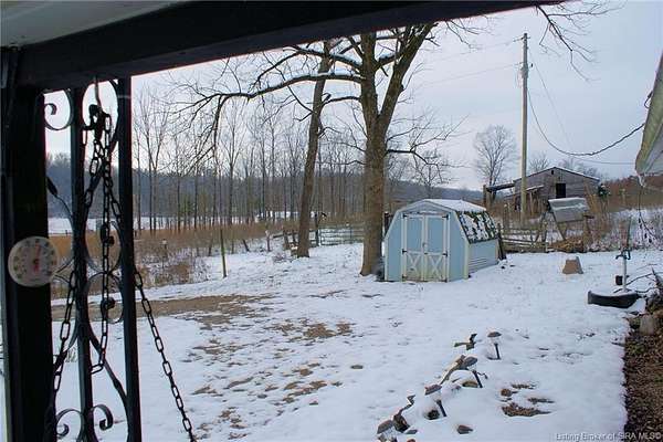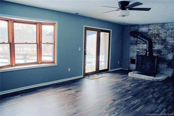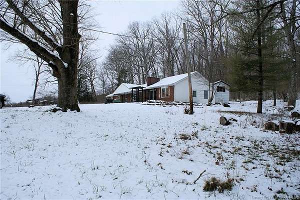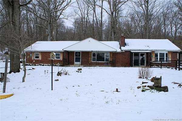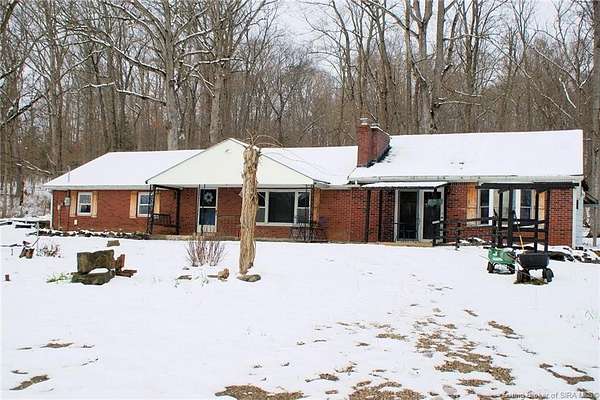 Welcome to this beautiful 4 bedroom, 2 bathroom ranch with 2100 square feet of living space, a possible 5th bedroom/den/or office, a family room, living room, and 40.5 acres in Depauw, IN. Plenty of land for hunting, gardening, and pastures ready for animals. The property has a pond, chicken coops, barns, and other outbuildings. This berm house has many updates throughout; new heating and air conditioning, premium flooring, fresh paint and new fixtures adorn this farmhouse. Amenities include a Napoleon wood burning fireplace, a Franklin cast iron wood burning stove, a large upright freezer, a pantry and built-in book shelves. The property is just 20 minutes from Corydon and just 35 minutes to Louisville.