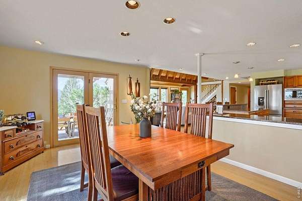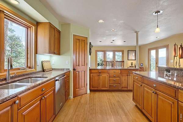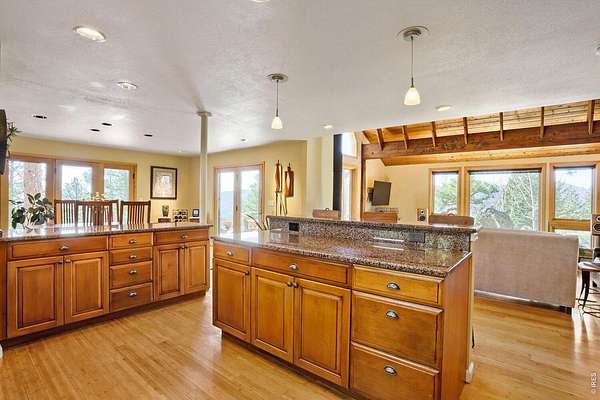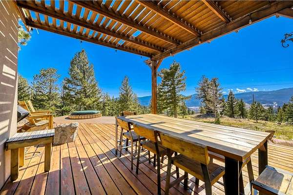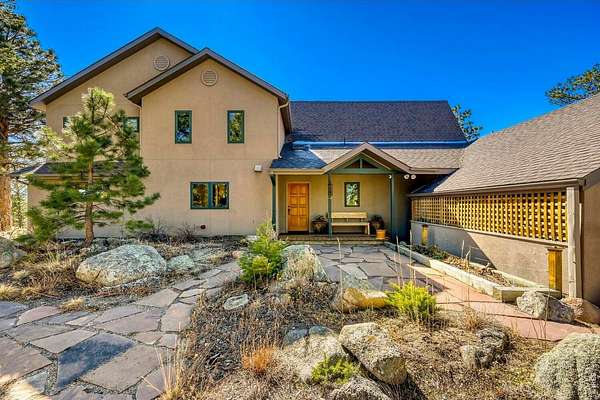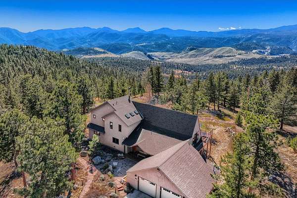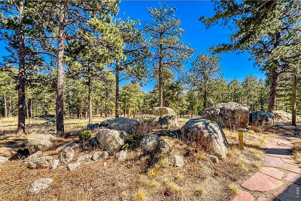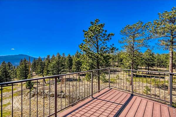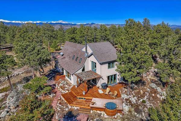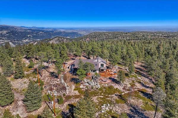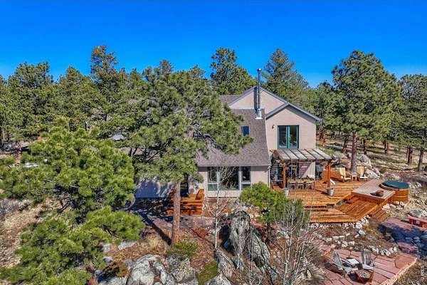 Open House Sunday 11-2. A Modern Colorado Mountain Home with City Convenience. Starting at Broadway and Baseline, 4 songs from your playlist lead you up a paved road to a private alpine drive that takes you back into the trees to your own private retreat. A flat driveway and 7 exceptional acres of trees, rock outcroppings, panoramic views backing directly up to the 2,880-acre Walker Ranch open space. Thoughtfully designed for both comfort and connection, this home offers a warm, inviting flow ideal for hosting, gathering, and creating lasting memories. Vaulted ceilings, wood beams and wood flooring complement streaming daylight from walls of windows custom designed to give you nature views from every single room. An updated kitchen, induction cook top, stainless appliances and bar allow room for two chefs at the same time and plenty of space for entertaining. Dining is a fun decision between a formal dining room or the large deck off the kitchen. The primary is complete with a large walk-in closet and a fully appointed deluxe bath. The extended upstairs family/recreation or office leads to a raised deck for meditation or sun bathing. Outside, note the maintenance free stucco and high-end windows and doors. The oversized, private, wrap around deck has views of rolling hills and distant mountain tops. Now add the serenity of an adjacent year-round water feature. A hot tub to enjoy "dark sky" nights with millions of stars. A firepit for meaningful conversations. Elevated above all other surroundings, the land is ideal to take a break from your work life to walk, play, climb trees, build forts, relax and simply live the dream life. The oversized 2 car heated garage even has an elevator to magically raise up every thing you want to store in 120 sq ft of attic storage. **Should you ever have to leave the privacy of your home, it's a 15 minute cruise back down to town conveniences with incredible views looking down over Boulder and out to Kansas.