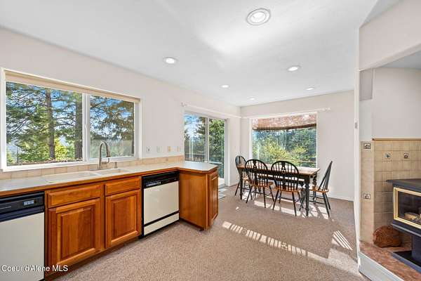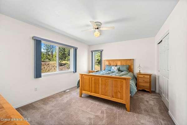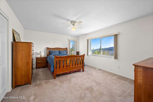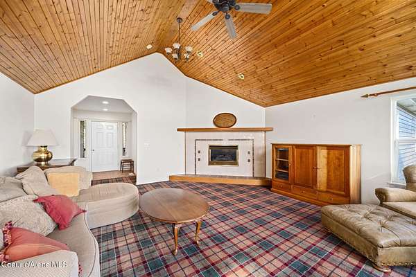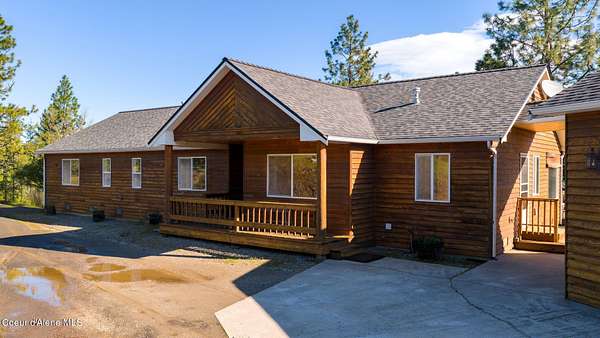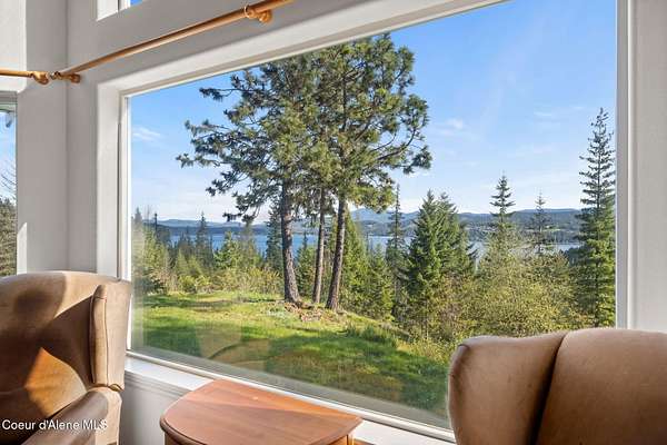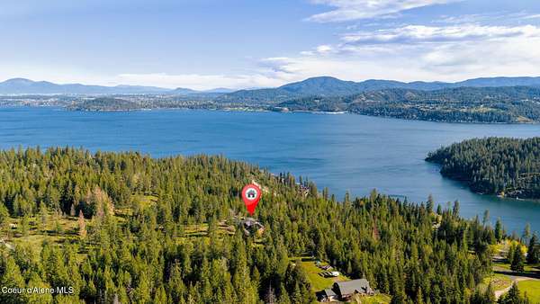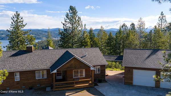 Rare opportunity to own 10.06 acres with Coeur d'Alene Lake views just minutes from Gozzer Ranch and close to downtown Coeur d'Alene. This single level home offers 3 bedrooms, 3.5 bathrooms, and 2,206 sq ft with a functional layout, vaulted ceilings, and large windows that frame Coeur d'Alene Lake views from the main living areas. The property includes a detached oversized 3-car garage/shop, ample parking, and usable acreage with privacy and space to expand. Surrounded by larger parcels, this setting offers a quiet, natural backdrop with abundant wildlife and North Idaho scenery. Built in 1998, the home is ready for updates and presents an excellent opportunity for a primary residence, second home, or investment property in a highly desirable area near lake access, golf, and recreation.