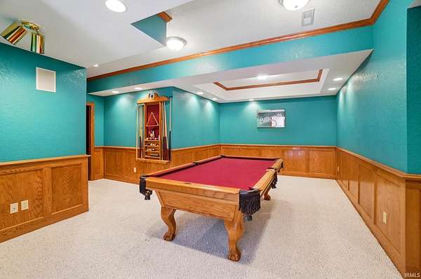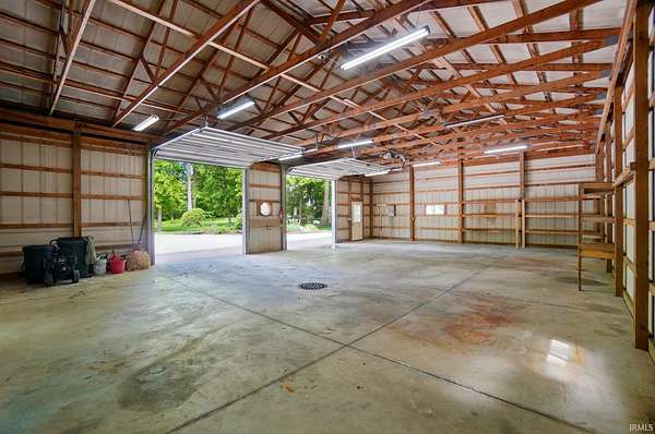 Welcome to 6011 W Wallen Road, a serene retreat nestled in the outskirts of North West Fort Wayne. This 2 story home with a finished basement offers a private, wooded setting featuring 4 spacious bedrooms and 4 bathrooms (2 full, 2 half) across 3,026 sqft of finished living space. This quality home was built by Maggos Builders, a local, custom home builder now with over 40 years of experience. The list of features for this home is seemingly endless, so be sure to ask your real estate agent for the attachment with more details. Some of the most notable features include 441 feet of total road frontage along Wallen Road (providing enough room for the pull through driveway and 2 accesses to the road), 2 parcels (4.96 acres with the house and out building, then another 3.32 acre parcel with the pond and maybe an opportunity to sell later or build another house for family), no HOA for either parcel, large 76'x32' insulated out building with water and electricity, an additional detached 2 car garage, and a large gravel parking lot in back. Imagine sitting on the pier enjoying nature by the pond fishing for bluegill while listening to the fountain splash water, or maybe enjoying a large gathering with plenty of parking for friends and family. You could also catch up on some reading while lounging in the screened in back porch with cathedral ceilings. Another option would be to have some fun at the basement wet bar with a brass rail and billiard table. You won't want to miss your opportunity to make this 1 owner home your own!