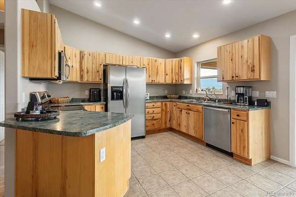 The home features three bedrooms, two bathrooms, and an open main level filled with natural light. The living room has hardwood floors, vaulted ceilings, and large windows that frame the views. The kitchen includes natural wood cabinetry, stainless appliances, and plenty of counter space for cooking and entertaining. The primary suite is on the main level and includes a walk-in closet and private bath. A full walkout basement is roughed in for a bathroom and ready for the new owner to finish as needed. It is ideal for additional bedrooms, a rec room, guest space, or a workshop.