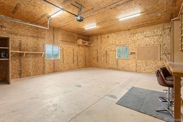 The oversized 32 by 28 foot detached garage includes built-in storage and owned solar panels. There is room for vehicles, tools, and everything that comes with the mountain lifestyle. The walkout lower level opens to a flagstone patio with a fire pit, surrounded by natural landscaping and a peaceful treed setting. Just steps away, a built-in horseshoe pit adds a fun and casual touch, perfect for laid-back afternoons and gatherings with friends. The front yard includes a low-maintenance rock garden with a small water feature that adds curb appeal and character.