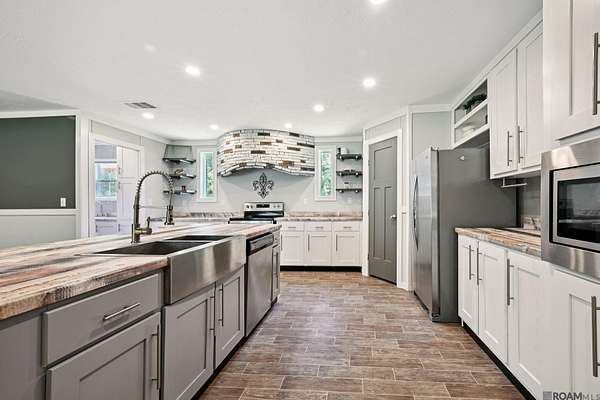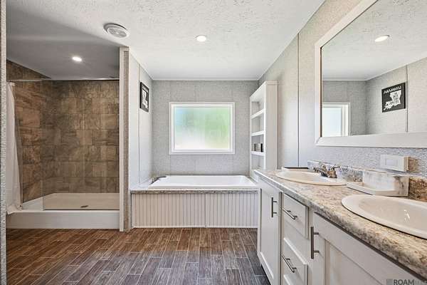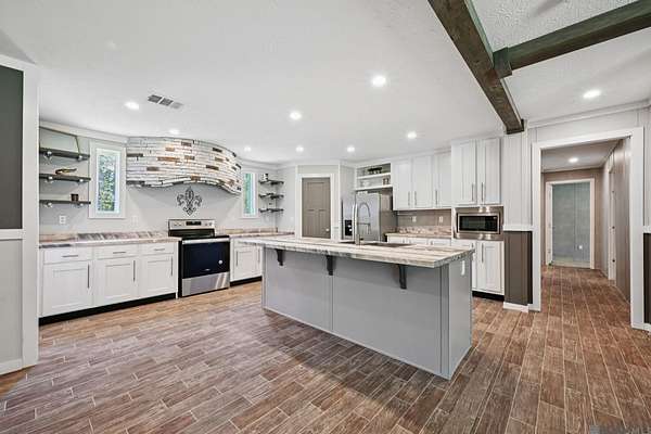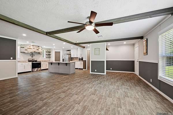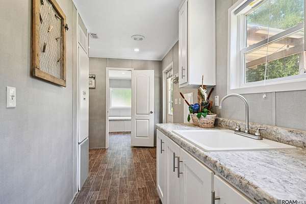 This spacious home offers over 2,000 square feet of stylish living with an open layout that flows from the large living room into the dining area and kitchen. The kitchen features a large island, pantry, and plenty of cabinet space, while the separate dining area has room for a full-sized table. The primary suite includes a large bedroom, soaking tub, dual vanity, walk-in shower, and walk-in closet. Three additional bedrooms are located on the opposite side of the home with a well-designed bathroom featuring a double-sink vanity and separate tub/shower area. A utility room with washer/dryer connections and extra storage completes the layout. Situated on 10 secluded acres in Amite, Louisiana, this property offers the perfect blend of privacy, space, and comfort.