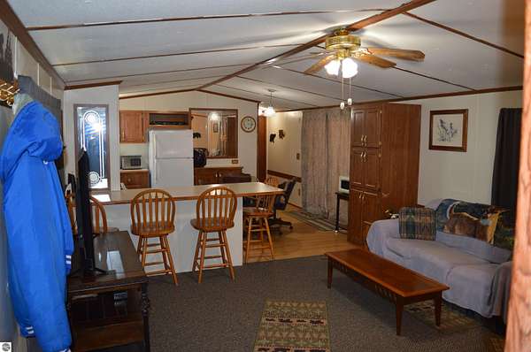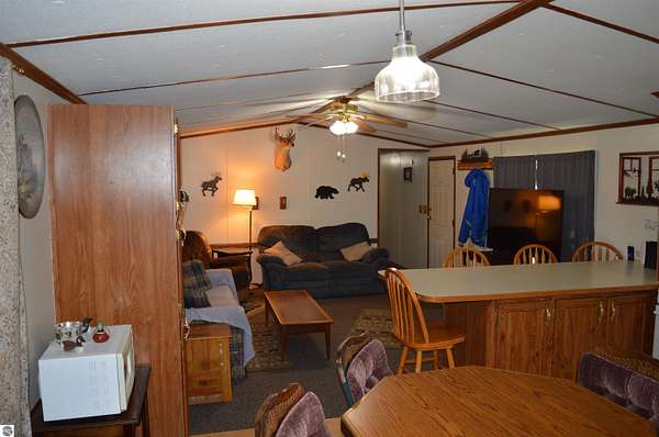 Discover your new retreat in beautiful Kalkaska, where nature and comfort blend seamlessly. This welcoming home sits on over 2.3 acres and features a front and rear covered porch, perfect for enjoying peaceful sunset views. The spacious open floor plan invites warmth and light, showcasing a large kitchen. Most furnishings are included, making it easy to settle in and start creating memories. The property also offers a convenient 12x16 storage shed for all your outdoor equipment along with a firepit for cozy gatherings under the stars. Situated close to breathtaking lakes, scenic trails, and state land, this location is ideal for outdoor enthusiasts. A 30 amp outlet for RV parking adds to the home's appeal, providing flexibility for adventurous weekend getaways. With its perfect blend of tranquility and access to recreational opportunities, this property is an opportunity not to be missed. Embrace the lifestyle you have always dreamed of in this Kalkaska gem.