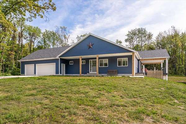 Privacy & nature surround this spacious 6 bedroom, 4.5 bathroom ranch style home on 31 wooded acres. Built in 2023, this stunning 4466 sqft home offers an open floor plan, with a sleek modern farmhouse style and beautiful views from every window. The kitchen is absolutely incredible with 2 large pantries, 2 sinks, an abundance of counter space and it's own deck, perfect for outdoor dining or grilling. The 15 foot long center island has a custom made barnwood top sourced from 180 year old barn wood. The primary bedroom with ensuite and private deck, along with a large laundry area are both on the main level. Also on the main level you'll find the 2nd bedroom, living room with fireplace that opens to a large, covered deck, and home office. The walkout basement offers 4 more sizable bedrooms, two full baths and a recreation room with a sliding door to the concrete patio. The oversized 3 car garage offers plenty of additional storage. Extensive, terraced retaining walls, a circular driveway and newly planted grass provide a graceful transition between this beautiful home and the nature that surrounds it. The 31 acres are mostly wooded and filled with black raspberries, morel mushrooms and a large deer population. Located just 3 minutes from Bangor and 12 minutes from South Haven with its Lake Michigan beaches & sunsets, restaurants, wineries, breweries and shopping district. An unexpected relocation makes this a once in a lifetime opportunity for a new owner. Call the listing agent or a trusted local agent directly to view this wonderful home today!
