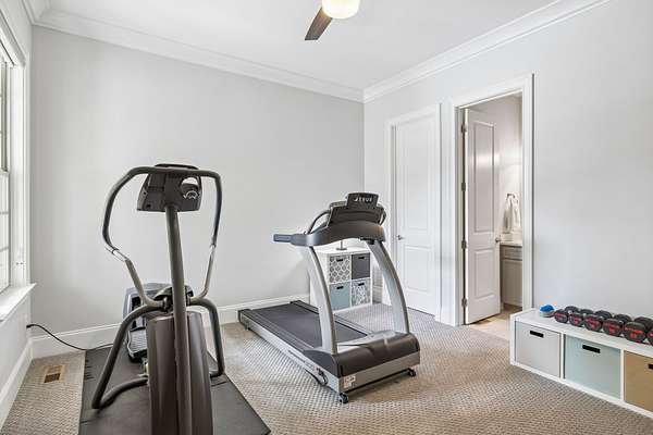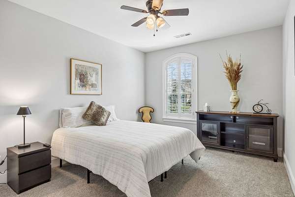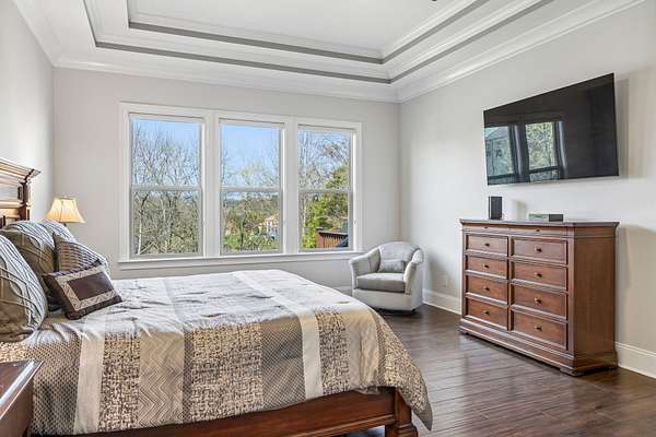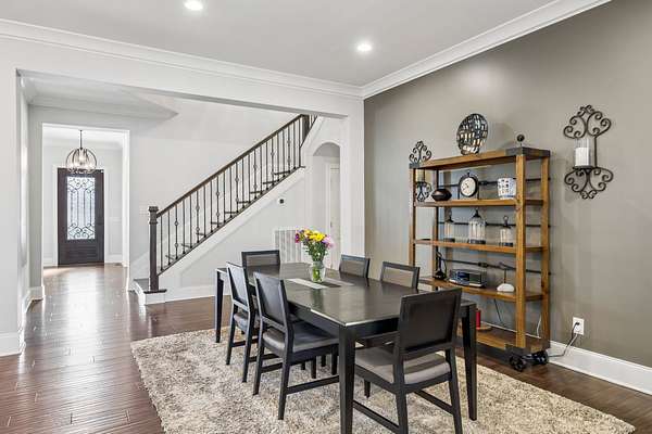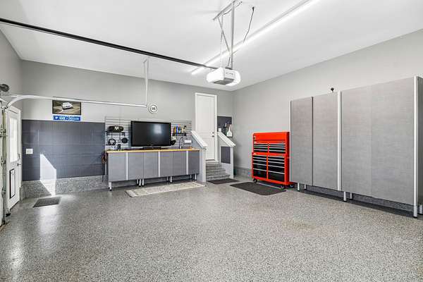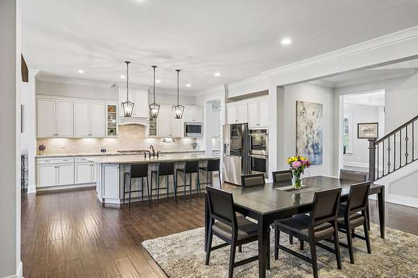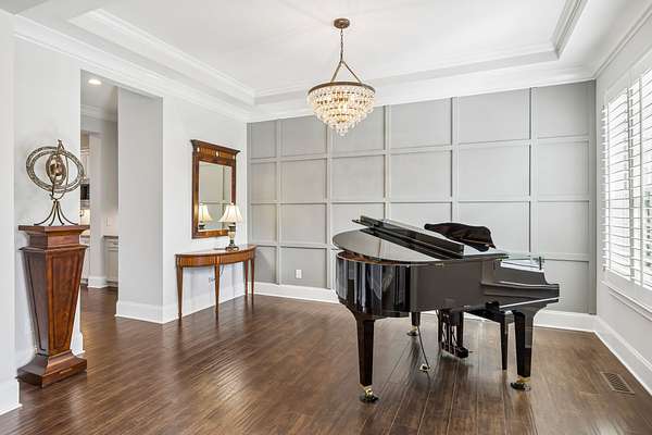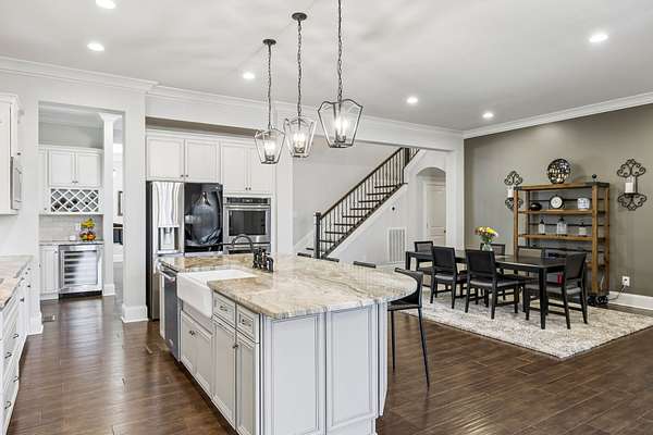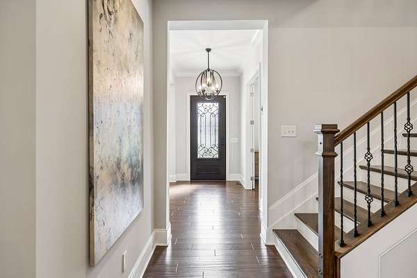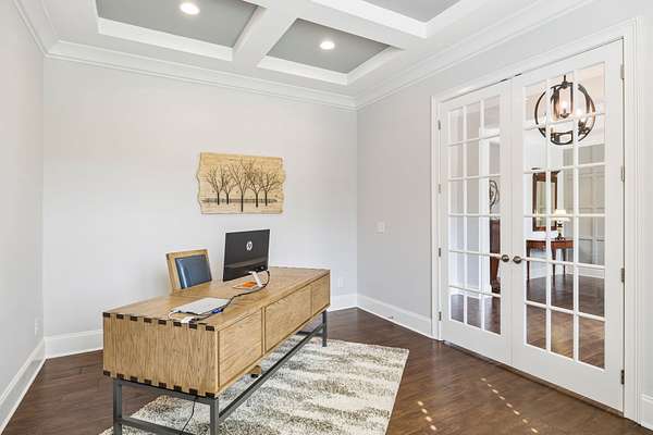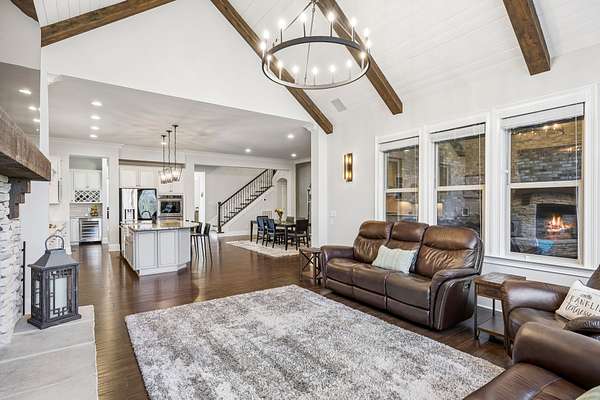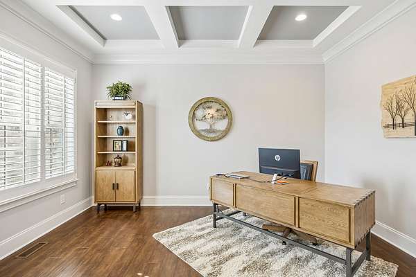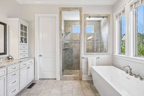 Stately home situated on over 1.5 private acres. Impeccably maintained with incredible upgrades and attention to detail. The home features open living spaces highlighted by a beamed vaulted ceiling in the den, a stone gas fireplace, and a wall of windows overlooking the pristine backyard. Beautiful hardwood flooring throughout the main living areas with custom plantation shutters on the front of the home and Duolite Silhouette blinds on the back. The gorgeous kitchen is well appointed with granite countertops, tile backsplash, double ovens, a farmhouse sink, and is complemented by a wonderful butler’s pantry with wine rack and beverage cooler. The spacious primary suite offers lots of natural light, an organization alcove or coffee bar, and an oversized soaking tub and separate shower in the primary bath. The incredible laundry room offers abundant cabinetry and space for a full-size refrigerator. Need an office? This home office features French doors and a beautiful coffered ceiling, providing an elegant work-from-home space. Upstairs, the large bonus room is complete with a wet bar and beverage cooler. New gas water heater recently installed. The outdoor living is just as impressive as the indoor. The covered back porch features a motorized retractable screen and opens to a large deck overlooking the beautifully maintained backyard. A new roof was installed in July, 2025, and there's extensive landscaping with a 19-zoned irrigation system to keep landscaping looking lush. A 4-plank black fence was installed along the south side of the backyard. The garages have an epoxy flooring, utility sink, and custom cabinetry. There's incredible storage space under the deck where all the lawn equipment can be stored. Large side yard with additional privacy provided by adjacent HOA-owned space, This exceptional property offers space, privacy, and high-end upgrades throughout. Please see the photo gallery for specific details noted under each photo.