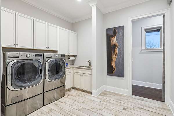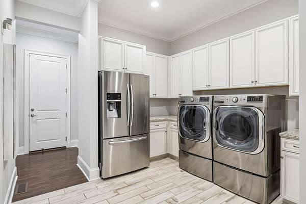 - Built-In Gas Range, Dishwasher, Disposal, Double Oven, Dryer, Microwave, Refrigerator, Stainless Steel Appliance(s), Washer