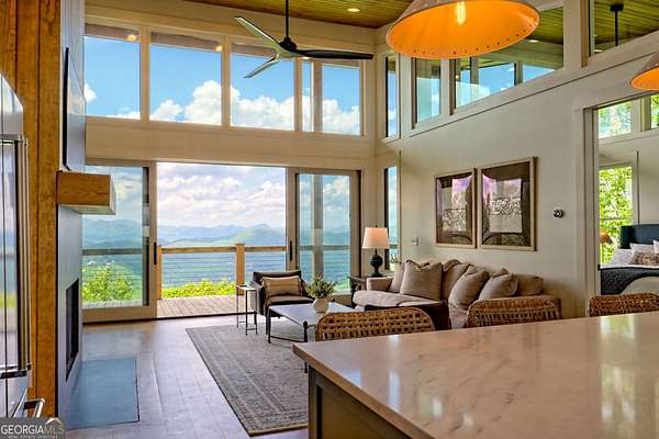 Escape to the serene beauty of Lake Burton's beloved Charlie Mountain and indulge in the ultimate mountain and lake living experience in this modern 3 BD / 3 BA cabin. Boasting spectacular 30-mile mountain views, this home offers a tranquil respite from the hustle and bustle of the city. On a clear day, you can even see the highest point in Georgia, Brass Town Bald, adding to the already stunning scenery. Relax in the spacious open-concept living area, anchored with a wood-burning fireplace and massive windows with sliding glass doors that flood the space with natural light and offer unobstructed views of the majestic mountains. Vaulted ceilings, sleek finishes, and warm wood accents elevate the interior with a sophisticated yet relaxed feel---perfect for entertaining or simply soaking in the peace of your surroundings. The fully equipped kitchen features premium appliances and a thoughtful layout that is perfect for preparing delicious meals to enjoy on the expansive deck that extends the living space into the clouds. The primary suite and ensuite guest bedroom are true sanctuaries, each offering double-sink vanities, stylish tile showers, and private access to the deck and those same show-stopping views. Downstairs, you will find an 8-person bunkroom, full bathroom, and flexible living space---perfect for overflow family and friends. Every room has been thoughtfully designed to maximize light, comfort, and the unparalleled setting. Located just two miles from the marina, you can easily rent (or own) a boat and explore the pristine waters of Lake Burton, one of Georgia's most prestigious lakes. A short drive away is downtown Clayton, where you can immerse yourself in local culture, browse charming boutiques, and indulge in the many restaurants and attractions the town has to offer. Whether you seek a full-time residence, luxury vacation home, or investment property, 602 Charmont Dr is the pinnacle of North Georgia mountain elegance. Located less than two hours from Atlanta, it is the ideal escape from the hullabaloo of the city. Do not miss your chance to own a piece of paradise on top of Charlie Mountain overlooking Lake Burton and the Blue Ridge Mountains. Schedule your private showing today to experience these views in person---they're even better than the photos!