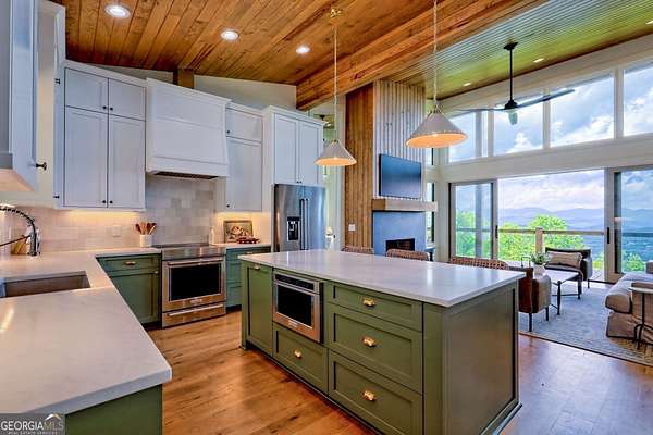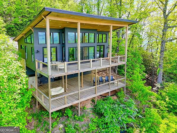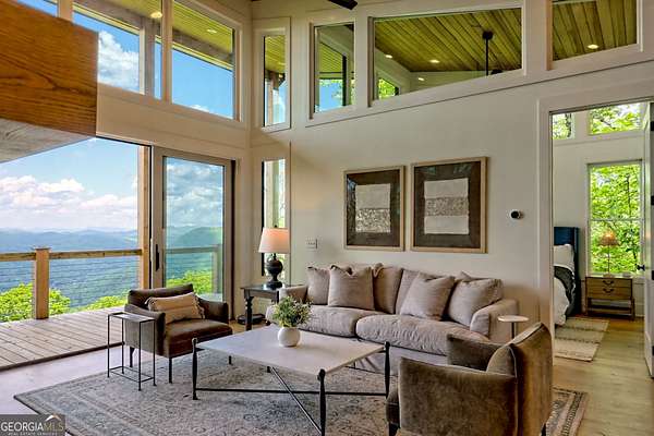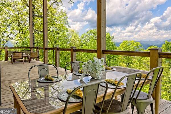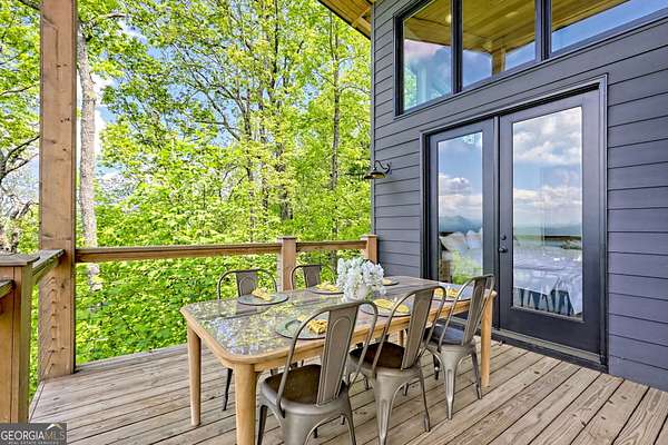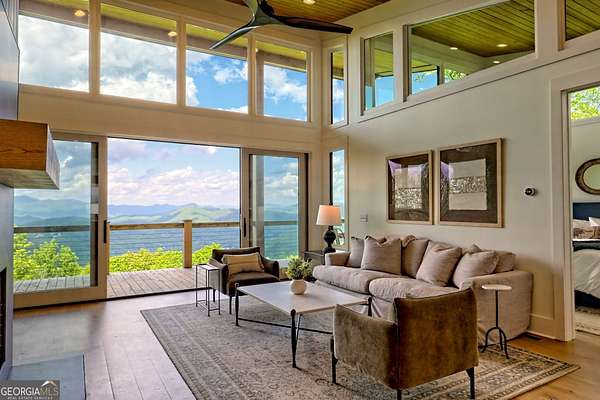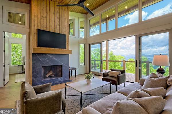 Escape to the serene beauty of Lake Burton's beloved Charlie Mountain and indulge in the ultimate mountain and lake living experience in this modern 3 BD / 3 BA cabin. Boasting spectacular 30-mile mountain views, this home offers a tranquil respite from the hustle and bustle of the city. On a clear day, you can even see the highest point in Georgia, Brass Town Bald, adding to the already stunning scenery. Relax in the spacious open-concept living area, anchored with a wood-burning fireplace and massive windows with sliding glass doors that flood the space with natural light and offer unobstructed views of the majestic mountains. Vaulted ceilings, sleek finishes, and warm wood accents elevate the interior with a sophisticated yet relaxed feel---perfect for entertaining or simply soaking in the peace of your surroundings. The fully equipped kitchen features premium appliances and a thoughtful layout that is perfect for preparing delicious meals to enjoy on the expansive deck that extends the living space into the clouds. The primary suite and ensuite guest bedroom are true sanctuaries, each offering double-sink vanities, stylish tile showers, and private access to the deck and those same show-stopping views. Downstairs, you will find an 8-person bunkroom, full bathroom, and flexible living space---perfect for overflow family and friends. Every room has been thoughtfully designed to maximize light, comfort, and the unparalleled setting. Located just two miles from the marina, you can easily rent (or own) a boat and explore the pristine waters of Lake Burton, one of Georgia's most prestigious lakes. A short drive away is downtown Clayton, where you can immerse yourself in local culture, browse charming boutiques, and indulge in the many restaurants and attractions the town has to offer. Whether you seek a full-time residence, luxury vacation home, or investment property, 602 Charmont Dr is the pinnacle of North Georgia mountain elegance. Located less than two hours from Atlanta, it is the ideal escape from the hullabaloo of the city. Do not miss your chance to own a piece of paradise on top of Charlie Mountain overlooking Lake Burton and the Blue Ridge Mountains. Schedule your private showing today to experience these views in person---they're even better than the photos!