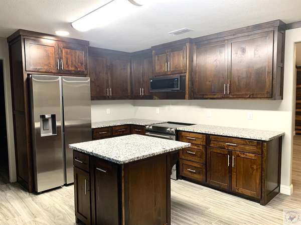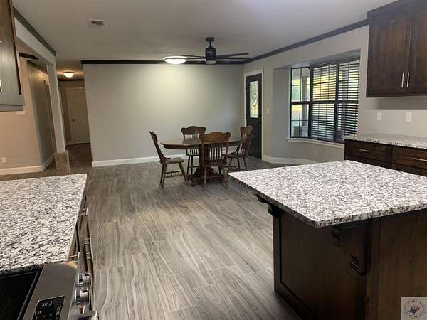 This one has something for everyone in the family! FRESH REMODELED...3 Bedroom 2.5 Bath OPEN CONCEPT RANCH STYLE 2,049' SQFT BRICK/SLAB METAL ROOF HOME ON 15 ACRES IN THE O'FARRELL COMMUNITY AND LOCATED AT THE END OF CR 1145...PRIVACY AND SECURITY! This remodeled home has so many new features it's hard to list them all! Starting with the Beautiful GRANITE COUNTERTOPS throughout the home...in the KITCHEN, BATHROOMS, and UTILITY. Gorgeous new Wood Laminate Flooring, All new Stainless Kitchen Appliances! Bathrooms feature modern Tile Work and Glass Doors(see pics!) Handsome Kitchen features dark Mahogany Custom Cabinetry with Beautiful contrasting White Granite Countertops, an Island w/Bar Seating. The Open Concept Floorplan Design flows from the KITCHEN to the FORMAL DINING (with Bay Window) to the Massive DEN that features a Vaulted Ceiling w/Exposed Beam, a WOOD STOVE on a Floor-to-Ceiling Brick Hearth w/Natural Wood Mantle! Whoever heard of a Gorgeous UTILITY ROOM???!!! This place has IT! Beautiful Cabinets, beautiful Walls, Granite Counters, and a Half Bath! All Bedrooms are fresh too! Everything in the home is new! Outside Entertainment will be easy and Extra Nice with the 50' x 12' COVERED PATIO! THE serious part! This the perfect set up for the man that has Toys or Hobbies and needs an AWESOME SHOP that has 56'x28' concrete floor area and 56'x15' open sided lean-to on the back(tons of covered parking) Big 10'x11' Doors on each end! EXTRAS: Generator Hookup, TRACTOR BARN, & 3 STORAGE BLDGS! A MUST SEE! CALL LISTING AGENT TODAY!