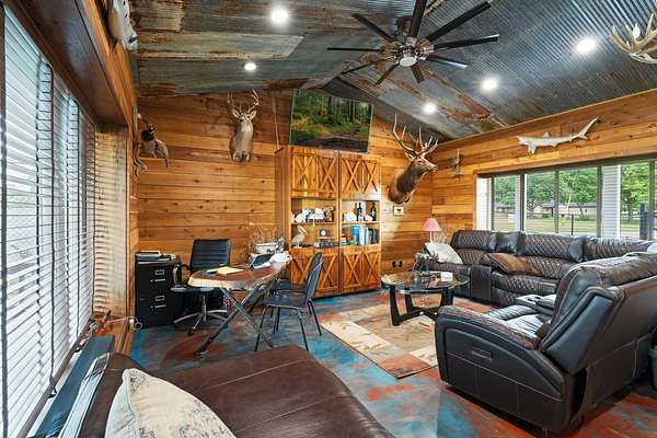 Exceptional versatile property in one of Oklahoma's most sought-after lake towns. Discover this 15-acre investment property with countless possibilities, perfectly located in the heart of Grove, Oklahoma. This multi-use estate is ideal for entrepreneurs, event planners, or those seeking a live/work lifestyle with endless space for business and recreation. This one-of-a-kind property is ready to deliver. KEY FEATURES: Event Center (10,000 sq ft): Where rustic meets elegance, every brides dream. Featuring top-of-the-line wood finishings throughout, luxurious bridal and groom suites, which provide the perfect spot to prepare and relax. Complete with upscale amenities for a seamless and memorable experience. This well maintained building is ideal for weddings, corporate gatheri Exceptional versatile property in one of Oklahoma's most sought-after lake towns. Discover this 15-acre investment property with countless possibilities, perfectly located in the heart of Grove, Oklahoma. This multi-use estate is ideal for entrepreneurs, event planners, or those seeking a live/work lifestyle with endless space for business and recreation. This one-of-a-kind property is ready to deliver. KEY FEATURES: Event Center (10,000 sq ft): Where rustic meets elegance, every brides dream. Featuring top-of-the-line wood finishings throughout, luxurious bridal and groom suites, which provide the perfect spot to prepare and relax. Complete with upscale amenities for a seamless and memorable experience. This well maintained building is ideal for weddings, corporate gatherings, Christmas parties, birthdays and any other memorable event. Office with Living Quarters (600 sq ft): Live where you work with this convenient on-site office and residence, perfect for a property manager, owner/operator or rental income. This space is crafted with high-end wood and epoxy finishes throughout. It offers a full kitchen, full bathroom, and a space-saving Murphy bed that seamlessly blends into the design. Sleek epoxy flooring and custom woodwork give the space a warm cabin feel. Warehouse & Wood Shop (5,200 sq ft): The ultimate space, a handyman's dream. Perfect for storing boats, collector vehicles, RVs, etc. This expansive warehouse offers endless possibilities with its vast open floor plan and high ceilings, perfect for large-scale operations. Included is a fully equipped Wood Shop for a commercial venture, woodworking, fabrication, production, custom builds, or creative industrial projects-all under one roof. Expansive 15-Acre Grounds: A blend of open space and mature trees offers plenty of room for outdoor events, future development, or serene country living, all while being minutes from local amenities. Currently used as a personal gathering space with golf range and cozy fire pit. Agent related to seller.