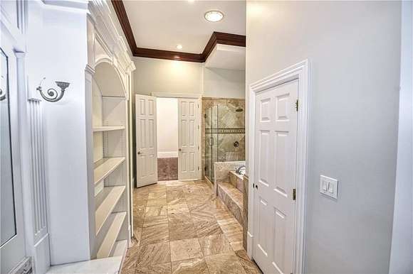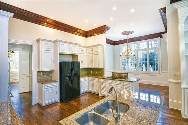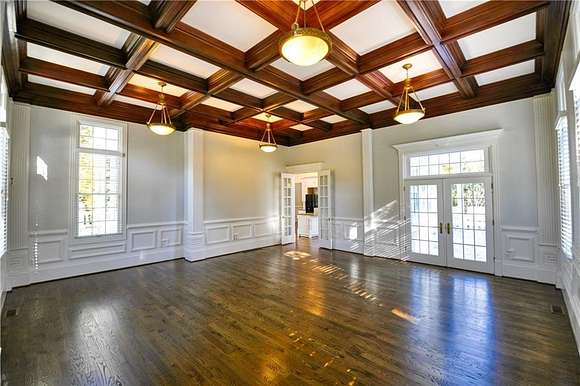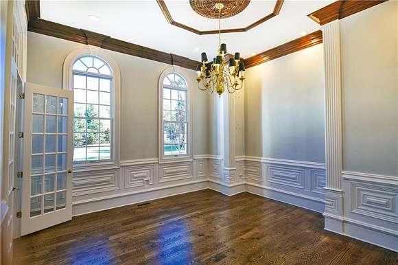 Grand entry to split stairs and towering two story ceiling. Great room, with floor to ceiling windows gathering natural daylight from the western setting sun. Prepare meals in this complete chef's kitchen with custom 42" cabinets, range, oven, microwave and refrigerator, overlooking the vaulted ceiling keeping room and fireplace. Eat in at the bar, or in the breakfast room adjacent. The study showcases elegant handmade coffered ceilings and ample natural lighting. Master | Primary suite with 10+ ft ceilings, oversized and overlooking the pool. The full walk out daylight basement offers a myriad of spacious entertainment areas, and full bar for hosting family and guests and walk out to the patio and pool area. Theatre room with elevated platform ideal for movie nights, and memorable family experiences. This luxurious property offers a uniquely featured guest wing with two apartments, both upstairs and downstairs. Accessible across the walkthrough closed breezeway, this wing of the house has included living quarters separate from the main dwelling, with two bedrooms on each level, kitchen and full bathrooms. Private entry and access to the drive under three car garage. Providing a private living experience as a true attached carriage house. 5 car garage for parking all of your toys. The exterior has a newly installed 30-year architectural shingle roof, completely repainted exterior with Sherwin Williams Emerald paint. Every inch of the interior painted along with kitchen cabinets with new paint. 3/4" hardwood floors refinished with 2 coats of polyurethane. This home is in move in ready condition and awaits its new owner. Don't delay on this opportunity to own this amazing luxury mansion!