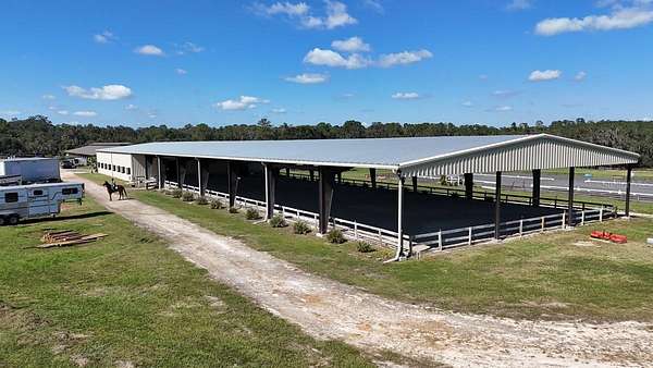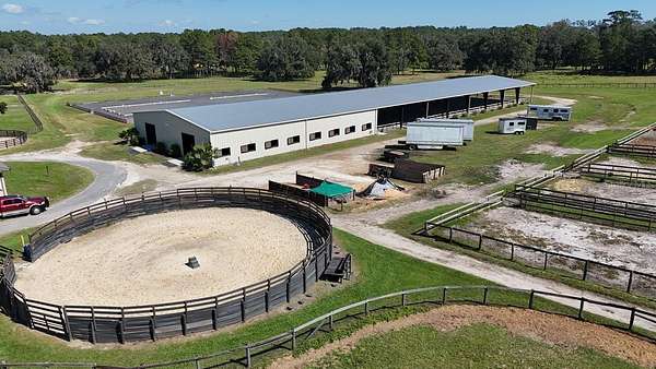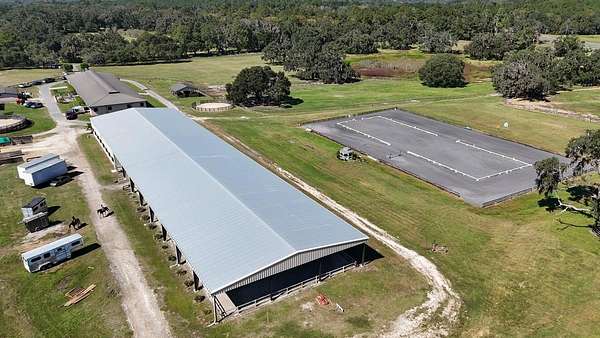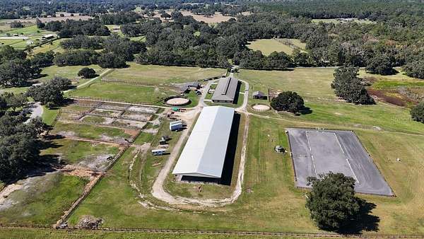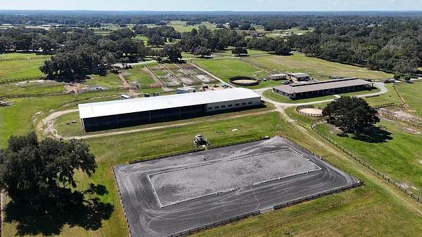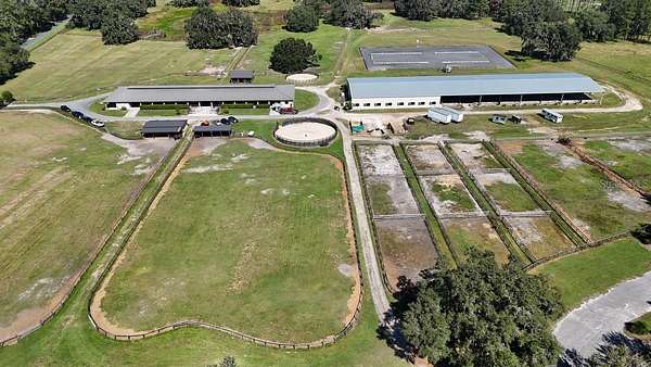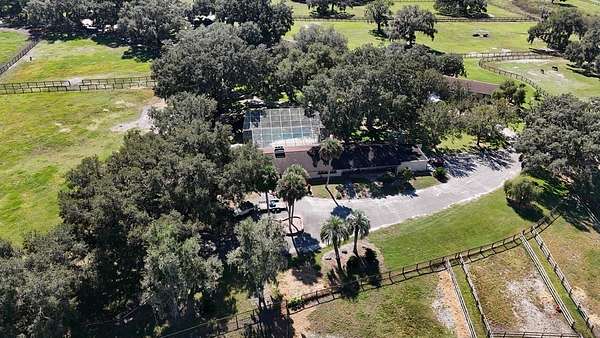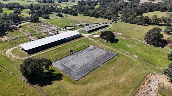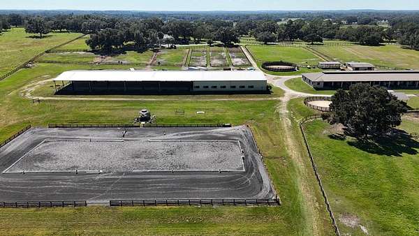 Situated just 6 miles from the renowned "World Equestrian Center" within a designated farmland preservation area, this prime location is ideal for all equestrian activities. Beautiful live oaks enhance the picturesque landscape, complemented by two electric gated entrances ensuring secure access to this remarkable property.