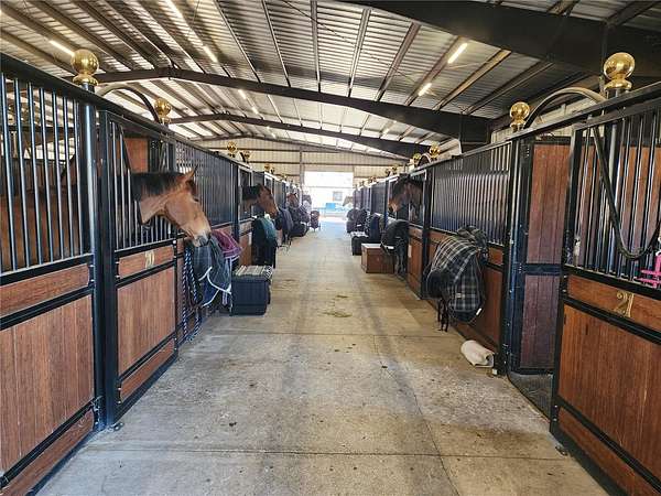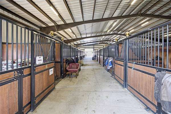 Trainers will excel with an 80' x 200' covered arena featuring premium GGT footing, irrigation, and a professional sound system. Outdoor amenities include a massive 200' x 300' arena with a viewing gazebo, two round pens, and a lush grass jump field. The property is thoughtfully designed with indoor/outdoor wash racks, grooming stalls, and multiple laundry facilities to support a high-volume program.