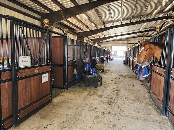 The infrastructure is a sanctuary for high-performance reproduction, featuring 61 total stalls equipped with mats, fans, and integrated fly-spray systems. The operation is anchored by a 26-stall specialized Reproduction Barn with a dedicated collection area and dual state-of-the-art laboratories. A separate 6-stall Foaling Barn offers 24/7 camera surveillance and onsite staff quarters, while the 22-stall Main Barn provides climate-controlled offices and tack rooms for seamless management.