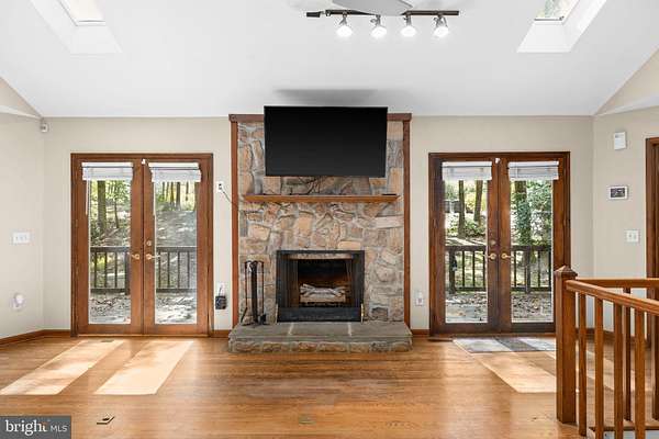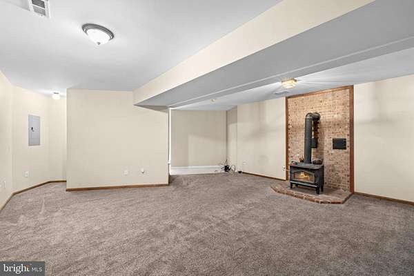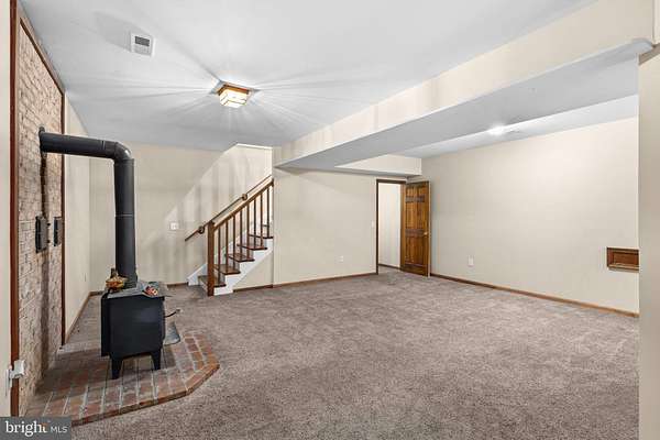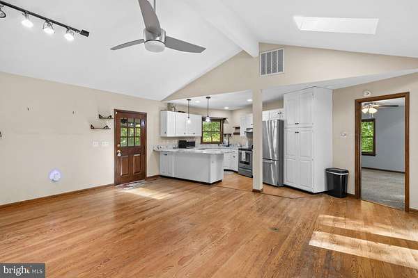 - Carpet, Ceiling Fan(s), Country Kitchen, Dining Area, Entry Level Bedroom, Open Floor Plan, Skylight(s), Tub Shower Bathroom, Walk-In Closet(s), Window Treatments, Wood Floors, Wood Stove