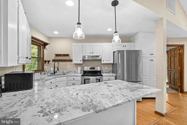 3.25% ------ ASSUMABLE--- VA ----- MORTGAGE! Discover serene living at 6025 Winston Place, perfectly nestled on a quiet cul-de-sac surrounded by a beautiful 3-acre wooded lot. Enjoy privacy, nature, and peace from the moment you arrive. Relax on the huge front porch, the ideal spot for morning coffee or evening sunsets. Step inside to an open floor plan highlighted by a cozy wood-burning stone fireplace, perfect for gatherings on cool evenings. The country kitchen blends charm and function with granite countertops, stainless steel appliances, and ample space for cooking and entertaining. The home offers two main-level primary suites, each with its own full bath, providing comfort and flexibility for guests or multi-generational living. The walkout basement expands your living space with a large rec room featuring a wood-burning stove, an additional full bath, and a third bedroom or flex room-ideal for a home office, or hobby space. Enjoy the outdoors year-round from the rear screened porch, overlooking a fenced backyard complete with a storage shed. If you're seeking privacy, comfort, and versatility in a peaceful cul-de-sac setting on 3 wooded acres, 6025 Winston Place is the one you've been waiting for!