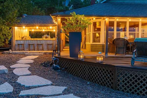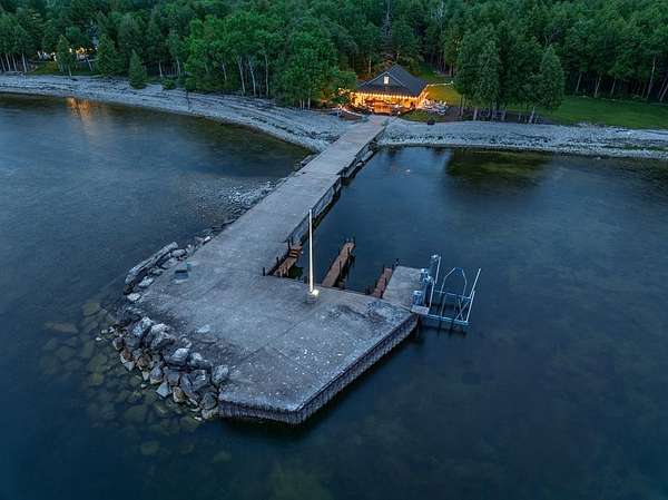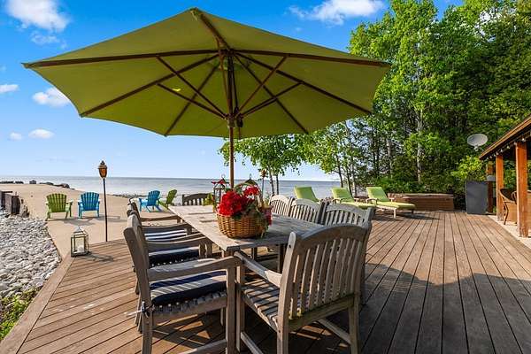 Est $25,441/moA very RARE property with 354' of waterfront, 225' long permanent pier,carriage house, beach house and private conservancy all on 3.56 acres! A gorgeous private retreat tucked off of Lady Slipper Rd facing directly West for your perfect panoramic sunset views. The Carriage house is 1,700 sf, the Beach house is 1,693 sf with a new summer kitchen and an oversized garage & shop. This lot is carved out of the larger lot at the corner of Bay Shore Dr and Lady Slipper Rd. The property was the first developed prime parcel by the original owner in the late 1800's as the best waterfront lot along the 9 miles of Bay Shore Dr. Includes 10,000-pound permanent boat lift.