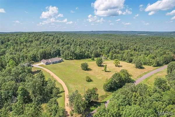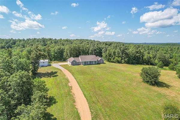 Breath-taking home on 64 acres (m/l) on top of the hill! You have to see this 3067 sq ft (m/l) ranch style home. Gorgeous home with a large 40x40 shop building. The home features some of the nicest cabinets you will find, granite countertops, high vaulted ceilings, two master bedrooms, (3 bedrooms total) and three bathrooms. Travertine tile, custom built-in bookcases, Anderson windows and doors, gorgeous windows and window treatments. The designer hit every element on this home. It sits on top of the hill with a view for miles. Seller will leave all kitchen appliances. Everything on one level with no stairs! Quiet, private patio area with daily deer visits. (Also available with only 6.5 acres (m/l) for $435,000. Ask for details.)