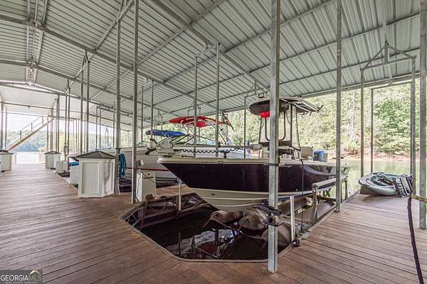 Welcome to 6029 Watermark Cove, a prime 1.65-acre lot offering 711 feet of deep-water frontage on Lake Lanier, ideal for building your dream home. Located in an exclusive, gated community of just 18 estate-sized lots, this property provides privacy, luxury, and unmatched lake access. The cleared build site is perfect for a large ranch-style home with a basement or slab foundation, with minimal grading required. Enjoy stunning westerly sunset waterfront lake views over the uninhabited Nix Island, adding to the tranquil setting. The property comes with a deeded boat slip and boat lift at the community marina, making it effortless to enjoy lake life to the fullest. Community amenities include a pool, spa, pavilion with a fireplace, and BBQ grill for your enjoyment. Underground utilities are in place, with all services available except sewer, allowing you to build at your convenience with any licensed Georgia builder. This property combines the best of lakeside living with close proximity to local attractions. You're just minutes from the Athens Boat Club, nearby parks, boat ramps, shopping, and the North Georgia Outlet Mall. With the adjoining Corps of Engineers land, the property feels even more expansive, making it closer to 2.5 acres in size. Nestled in a peaceful cul-de-sac with 145 feet of road frontage, this rare opportunity offers the perfect blend of privacy and accessibility. Whether you're looking for a serene retreat or a base for water-based adventures, 6029 Watermark Cove is an exceptional lot ready for your vision. Disclaimer: All information deemed reliable but not guaranteed and should be independently verified. Photos & lot lines may be virtually staged to assist buyers in visualizing the property's potential. Contact the listing agent for more information or to schedule a private showing