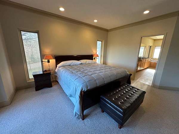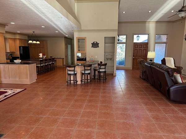 The approximate 5400sf home majestically sits atop one of the highest elevation points on the property. Immediately upon entering you'll notice the very thoughtful open floor plan, high-end finishes, and floor-to-ceiling windows designed to allow the outdoors in. The elevated 360 views are breathtaking as you overlook the beautiful spring-fed lake while also enjoying wildlife viewing from every window. This spacious western style home is unique and breathtaking and perfect for entertaining guests and making core memories that will last a lifetime