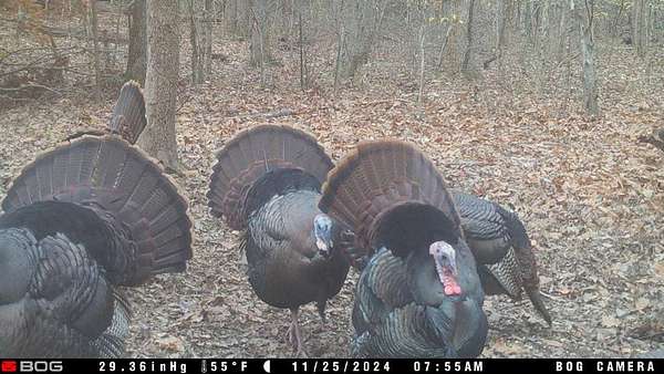 Naturally, all wildlife benefit from the dedicated efforts of habitat enhancement, timber management, food plots, supplemental nutrition and a sound harvest plan. Each Fall the abundance of mature mast producing trees drop their blessings of protein rich nutrition that wildlife crave and feast upon. As a result of these focused management efforts, the deer along with the wild eastern turkey population thrives, providing springtime magic for those that love turkey hunting or just simply enjoy watching and hearing these majestic strutting birds