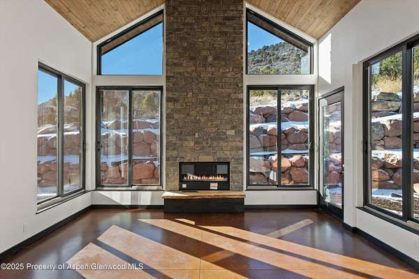 Experience luxury redefined at 603 Dry Park Rd, Glenwood Springs, CO, where contemporary design harmonizes with the natural landscape. Crafted by esteemed Aspen Valley architect Brad Jordan of Jordan Architecture Inc., this remarkable single-family residence offers 4,199 square feet of sophisticated living space on nearly 5 pristine acres adjacent to public land. Enjoy unparalleled privacy among mature trees, stunning mountain vistas, and thriving wildlife, all just moments from Sunlight Mountain Ski Resort and downtown Glenwood Springs, with easy access to Aspen and Vail. This exquisite home features five spacious bedrooms and five elegant bathrooms, providing abundant space and comfort. The main floor hosts a luxurious Primary Bedroom Suite complete with a bonus room, dual closets, and a spa-inspired 5-piece en-suite bathroom. Three additional main-level bedrooms, each with private en-suite baths, elevate the living experience. Upstairs, discover a secluded retreat featuring a large bedroom with a wet bar, an en-suite bathroom, and a private deck with breathtaking mountain views. The heart of the home boasts a gourmet kitchen, outfitted with top-of-the-line Z-line stainless steel appliances, Quartz Carrera Mist Countertops, and a concealed walk-in pantry. This culinary haven flows effortlessly into a cozy breakfast nook, a formal dining room, and an expansive living area with a gas fireplace adorned with natural stone veneer. Ideal for entertaining, the kitchen also offers an inviting island and dining area. Designed for seamless indoor-outdoor living, the residence is equipped with a whole-house speaker system, integrated humidifier, central AC, and gas heating, ensuring year-round comfort. Relax in the enclosed heated porch with its own fireplace adjacent to the breakfast area, or step out onto the covered porch from the living room to immerse yourself in the serene surroundings. Outdoor enthusiasts will revel in the private patio, decks, and extensive private land, perfect for savoring Colorado's lovely climate. The private yard offers a peaceful retreat, while generous storage solutions throughout the home and a spacious three-car garage meet all your storage needs. This stunning property combines luxury and functionality, offering elegance and comfort in every corner. Don't miss your chance to own this extraordinary home. *Photos are virtually staged.