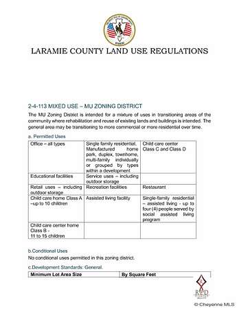 Est $10,901/moThis 4.91-acre property is situated on Cheyenne's primary east-west artery, just minutes from Laramie County Community College. The land has been recently zoned for mixed-use see photos for details, offering versatile development opportunities such as retail, multi-unit residential, and more. It is the only acreage on high traffic College Dr. zoned MU. The property includes an occupied brick home with no lease. Providing all utilities to the property. The lot currently features two access points off East College Drive. Priced below neighboring land values, this offering presents an attractive investment opportunity. Contact listing agent to schedule a tour.