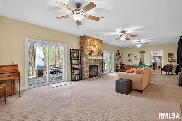 Coming Soon!!! The Ultimate Hobbyist's Retreat with Full Guest Suite Discover a home engineered for both high-performance hobbies and comfortable multi-generational living. This custom 2x6 frame construction residence offers unmatched durability and a list of features rarely found in a single property. The Dream Garage: The heated, oversized garage is a true professional workspace, featuring a hydraulic lift, hot and cold water, and a dedicated extra electrical panel. Thoughtfully designed for pet lovers, it includes an integrated indoor/outdoor kennel. A dedicated carport provides additional covered parking, while a 10x16 shed offers extra storage. Unrivaled Outdoor Living: Entertain on the massive tiered deck, featuring a private hot tub overlooking the grounds. The walk-out basement leads directly to the backyard, seamlessly blending indoor and outdoor life. Fire pit warms up those Fall evenings Multi-Generational Luxury: The lower level serves as a complete Mother-in-Law suite, boasting a full kitchen, private bath, spacious bedroom, and a cozy living area. Interior Comforts: The main living spaces are anchored by two gas fireplaces, creating a warm ambiance throughout. This home is move-in ready with all window coverings included, and the pool table stays for immediate entertainment. Enjoy peace of mind with a transferable termite protection plan.