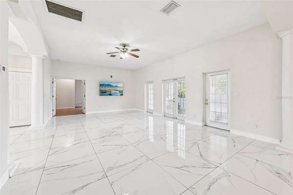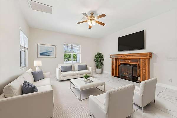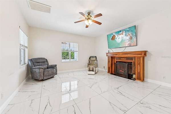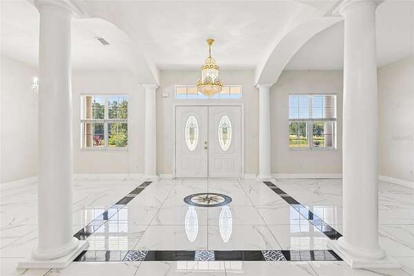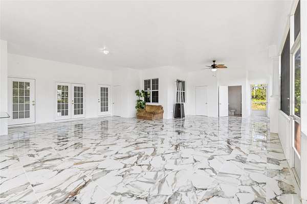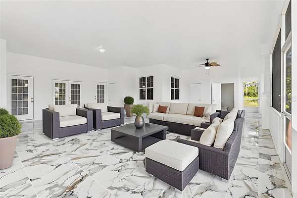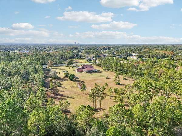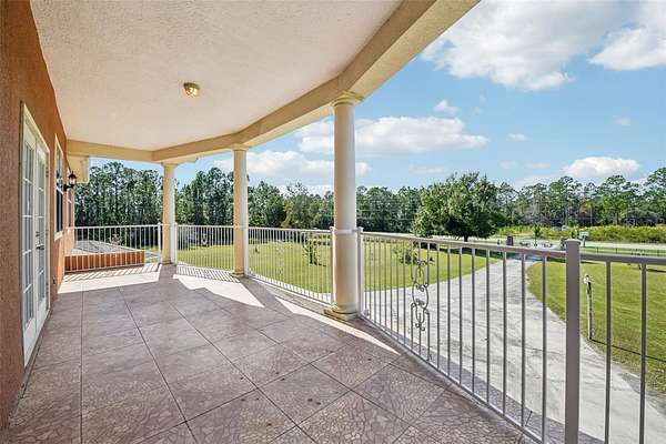 One or more photo(s) has been virtually staged. Dreams do come true! Welcome to your private slice of paradise in Wedgefield! This impressive custom-built estate offers over 5,000 square feet of living space with 6 bedrooms and 6 bathrooms, beautifully set on 4.77 acres and zoned A-2, so you can bring your horses, goats, chickens and more. Built in 2004 and well-maintained, this property blends peaceful country living with modern convenience and community amenities, including an 18-hole golf course, playgrounds, sports courts and nearby Hal Scott Preserve for hiking, biking and nature lovers. A 5-foot wrought iron fence spans the 360-foot front yard with a 20-foot wrought iron electric gate and pedestrian gates on either side, while the rest of the property is enclosed with 5-foot wire fencing- ideal for animals and added privacy. The enormous front and back yards are perfect for play, gardening, entertaining and enjoying the quiet setting, and the 288 sq. ft. Tuff Shed provides excellent additional storage. Step up to the Shark Coating front porch and through the double-door entry into a grand foyer that sets the tone for the rest of the home. Gorgeous inlaid porcelain tile flows throughout the first-floor living areas, and arched vaulted ceilings add volume and elegance. To one side of the foyer is a welcoming sitting room, and to the other, a formal dining area ready for large gatherings. The spacious, open kitchen anchors the main level with granite countertops, a granite breakfast bar, recessed lighting, abundant cabinetry and a huge walk-in pantry. The open concept layout connects all the spaces, giving you endless options for arranging living, dining and entertaining spaces to suit your lifestyle. On one side of the main floor you will find a guest bedroom with its own private bathroom featuring a Jacuzzi tub with shower - great for visiting guests or multi-generational living. The opposite side of the home hosts two individual office spaces, each with its own exterior entrance and one with a half bath, creating an ideal setup for remote work, home-based business, studio or hobby spaces. The main floor primary suite is a true retreat, complete with a tranquil sitting area and separate dual walk-in closets. The expansive primary bath offers a glass-enclosed shower, luxurious Jacuzzi garden tub and dual vanities, giving you a spa-like experience at home. French doors from the main living area open out to an approximately 1,100 sq. ft. screened lanai with porcelain tile flooring and a peaceful forest view. This impressive outdoor living area includes counter space with cabinets, a sink and a convenient half bath - perfect for hosting parties, enjoying quiet mornings with coffee, or relaxing after a long day without ever leaving your property. Up the grand curved staircase, a loft area opens to a balcony overlooking the front yard, giving you yet another beautiful space to relax or gather. Four additional bedrooms extend off the loft, two on each side, and each pair of bedrooms is served by a bathroom with a Jacuzzi tub and shower. One of the upstairs bedrooms features its own private sunroom, adding even more flexible living space for a reading nook, playroom, workout area or creative studio. This home is truly impressive - offering space, serenity and versatility inside and out! Come experience the peaceful setting and spectacular location for yourself. Call today to schedule your private showing an ASK US ABOUT THE ASSUMABLE VA LOAN or LENDER PROVIDED RATE BUY-DOWN CREDIT!