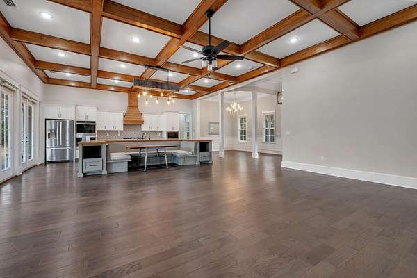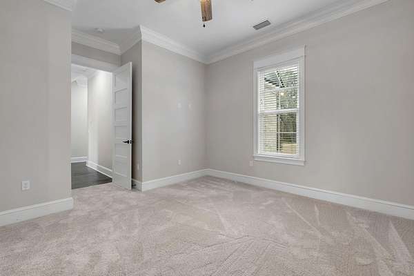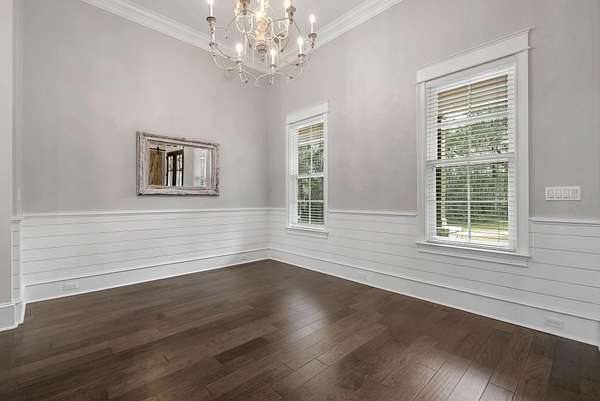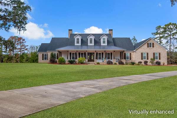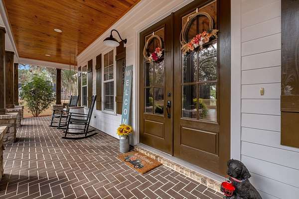 Some Photos have been Virtually Enhanced....Tucked away in Moore Pond, one of Tallahassee's premier gated communities, this 2020 Craftsman-style home sits on 3.49 picturesque acres and offers over 3,900 square feet of thoughtfully designed living space. Featuring four bedrooms, 4.5 baths, and a bonus room, the home lives primarily on one level with all bedrooms on the main floor. Highlights include an open-concept kitchen, formal dining area, private office/flex room, 10ft ceilings in the bedrooms and 12 ft ceilings in the living/kitchen plus a spacious master suite with coffered ceilings, two walk-in closets and a large master bath featuring an oversized tub, plus large walk in shower. Brand-new carpet in the bedrooms and engineered wood flooring throughout enhancing the home's modern appeal. Outside, enjoy a covered back porch with brick pavers and tongue and groove ceilings, an invisible pet fence, rocking chair front porch and a scenic, oak-lined driveway that creates a truly grand arrival.