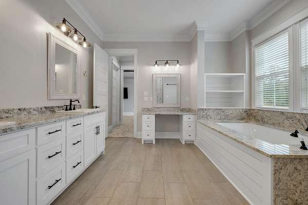 - Entrance Foyer, Garden Tub Roman Tub, High Ceilings, Pantry, Primary Downstairs, Split Bedrooms, Stall Shower, Walk In Closets