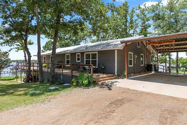 WATERFRONT ACREAGE... ONE-OF-A-KIND property on approx 9 acres with approximately 365 WFF offers an amazing opportunity for a family compound or your dream project. A recently renovated 3-2-3 carport lodge-style home offers a huge Open Concept Great Room with new wood floors, a fabulous Island Kitchen featuring custom concrete countertops, updated bathrooms and a huge downstairs bonus room perfect for entertaining or a bunkroom. Abundant decks surrounding the home are perfect for enjoying gorgeous water views that seem to extend forever. The new three-car carport with its elevated views and lake breezes is perfect for grillin and chillin any time of day. A water well serves the property which has a newish aerobic septic, and an on-site protected boat launch completes the package. An Iron pipe solar powered automatic entry to a winding private drive passes thru 35 platted 80x90 lots with mature trees. A unique opportunity for a secluded private residence or for development of an RV park or a tiny home community with the Main House as a top-floor welcome center and the lower level as a watercraft storage/rental for the residents. Get creative, build your dream project and schedule your appointment to view this versatile property soon. Subject to an acceptable offer, Seller will demo existing house and remove all debris within 30 days after closing at Buyer's request. Details attached under Miscellaneous documents