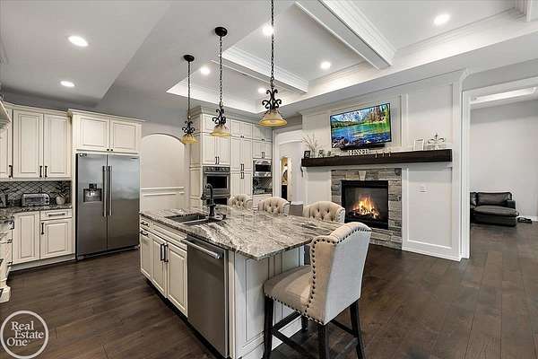 Custom built 4,600 sq. ft. designer ranch on private 2-acres within walking distance to Stoney Creek Metro Park. This custom home is finished with all high-end finishes throughout; Beautiful wide-plank hardwood flooring throughout the entire 1st floor; Custom woodwork and trim with coffered ceilings in great room & kitchen; Chef's gourmet island kitchen with stainless steel appliances, large breakfast nook & fireplace. Almost 1,000 sq. ft. primary suite features sitting room with fireplace, luxury bathroom, spacious His & Her's walk-in closets; Three other bedrooms all have bath access plus there is a 5th bedroom suite with full bath on second floor. Garage parking for 6 cars; Huge upper & lower patios with wood burning fireplaces; Unfinished walkout lower level has endless possibilities. Very private grounds offering a very tranquil setting. Rochester Schools.