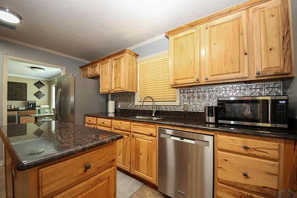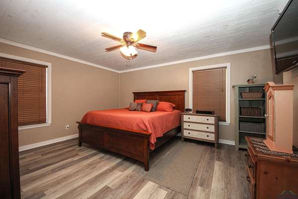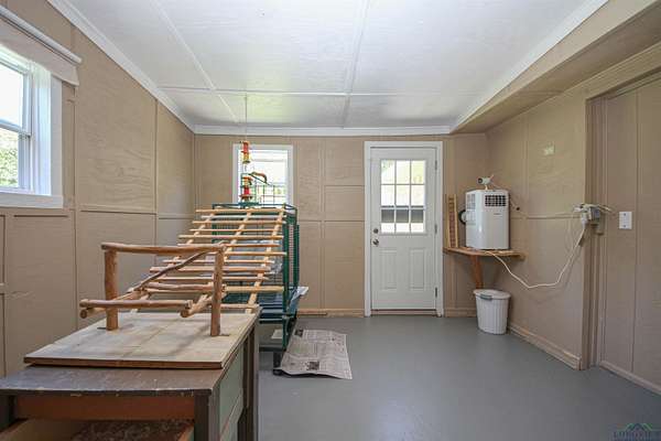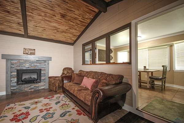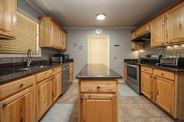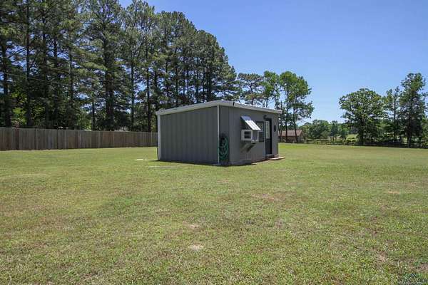 Private, Versatile Country Homestead on 4.75 Acres - Workshop, RV Parking & More! Tucked away behind a gated entry on a lush 4.75-acre tract, this inviting 3-bedroom, 2-bathroom ranch-style home offers 1,941 square feet of upgraded comfort, abundant storage, and room to grow -- making it the ideal property for families, hobbyists, and those seeking a self-sufficient lifestyle in a peaceful setting. Built in 1978 and beautifully maintained, the home blends classic charm with thoughtful modern touches. Inside, you'll find wood-look vinyl plank and tile flooring throughout, fresh paint, and updated finishes that give the space a cozy, yet contemporary feel. The living area impresses with a vaulted wood-paneled ceiling and exposed beams, creating warmth and rustic elegance. A striking stone-trimmed fireplace serves as the focal point, while a large pass-through connects the space to the adjacent dining area and breakfast bar. Large windows flood the home with natural light. The kitchen is a cook's delight -- featuring natural wood cabinetry, a center island, granite countertops, stainless steel appliances, and an eye-catching metallic backsplash. All three bedrooms are spacious and well-lit, with ceiling fans, large closets, and rich-toned flooring. Both bathrooms are beautifully updated -- the primary suite features a dual vanity with copper vessel sink and wood cabinetry, while the secondary bathroom offers a classic marble-look counter and tile surround. Beyond the home, the property includes: Attached 1.5 -car garage + 20'x40' detached garage/workshop with power, water, and drive-through doors -- perfect for car enthusiasts, boat storage, or a home-based business 18'x12' climate-controlled hobby shop with AC -- easily convertible into a guest space or potential Airbnb with nearby access to the aerobic septic system Two additional outbuildings for storage or creative use (12'x16' and a 12'x23' partitioned structure) RV carport with dedicated electric service Dual electric meters -- ideal for a second home, mobile unit, or income-generating addition West Harrison Water Supply + private water well for irrigation Fully fenced acreage with wooden privacy fencing on the east and part of the north side Automated security gate with keypad and remote access for added privacy The aerial views showcase the sprawling beauty of the property -- a level, open pasture bordered by trees, with ample room for expansion, gardening, animals, or recreation. Whether you're dreaming of a workshop, homestead, or extended family setup, this versatile property is ready to meet your needs.