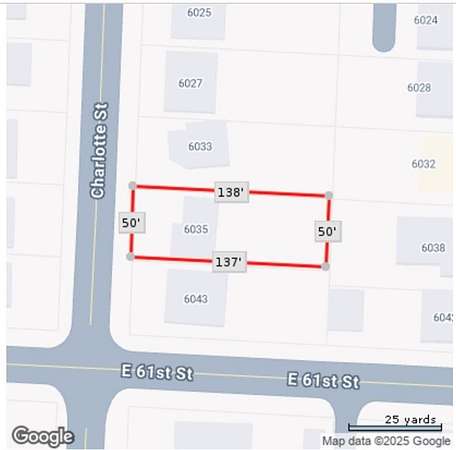 63rd Street to Holmes. North on Holmes to E 61st Street. East on E 61st Street to Charlotte Street. North on Charlotte Street. Lot is on righthand side of street.