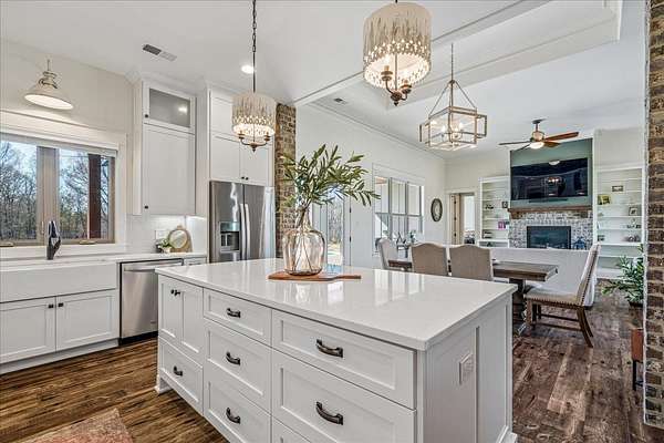 Est $3,394/moCustom Built Country Living-Open Floor Plan on 5 acres with a fully stocked pond, Salt water pool, 30x30 Shop with a 10 ft Over hang. Family room has an amazing Fireplace with Custom Built-ins, Gourmet Kitchen has Double Ovens Microwave, Ice Maker, Dishwasher plus a Large walk in Pantry. Quartz counters throughout. Gas logs. Remote Blinds. Luxurious outdoor kitchen and cover patio Great for Entertaining. Interior/Exterior recessed lighting. This home is full of Quality Amenities and Upgrades Galore! A Hidden Paradise built to invite and wow all your guest.