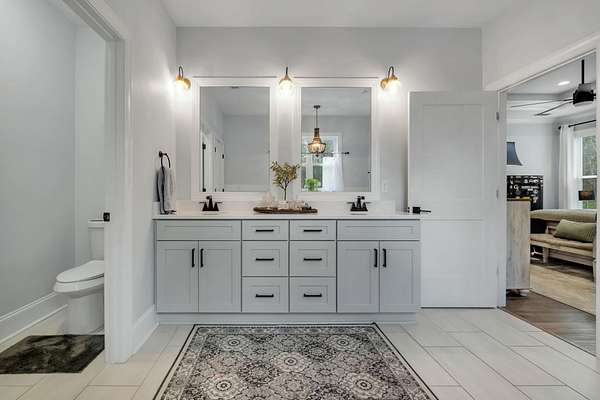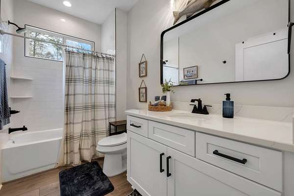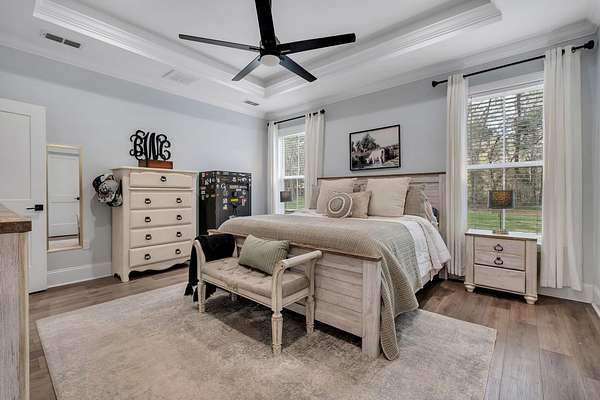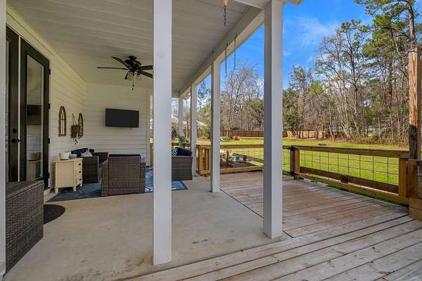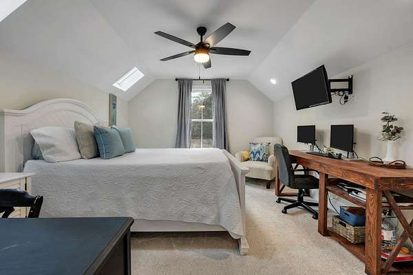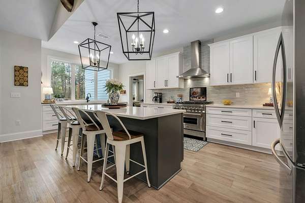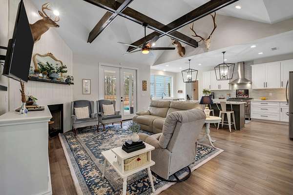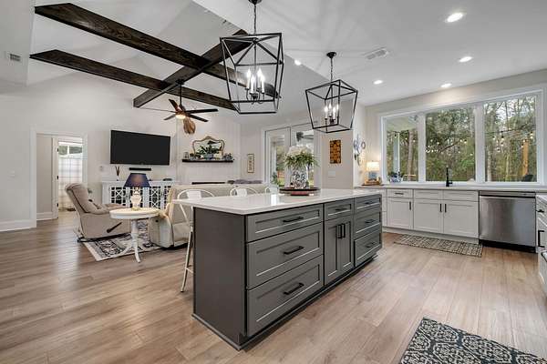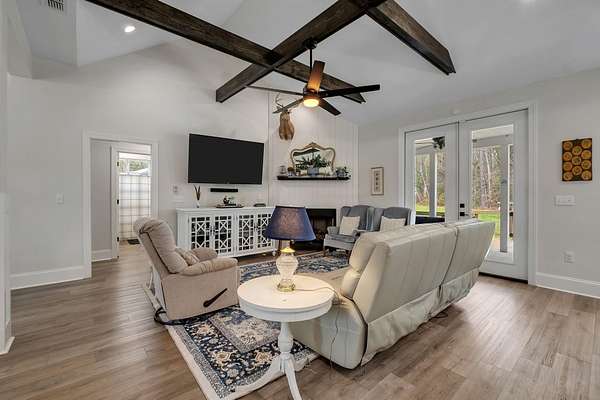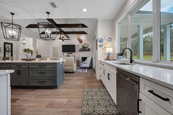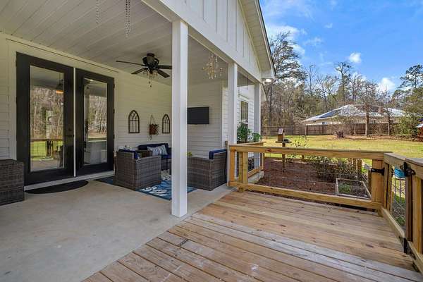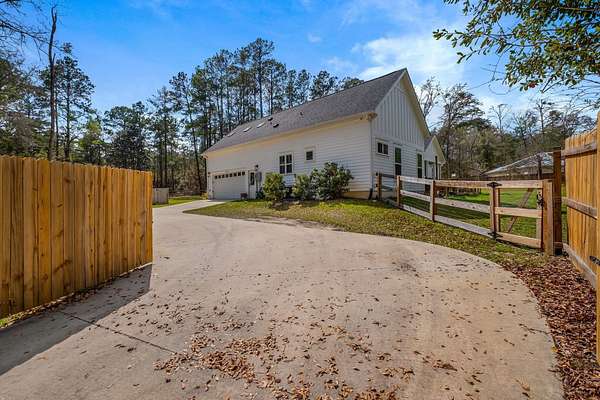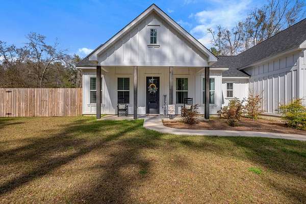 One or more of these photos have been virtually staged. Nearly new modern farmhouse built in 2023 on 2+ private acres in NE Tallahassee. This 4-bedroom, 3-bath home features a bright open floor plan with vaulted ceilings, custom wood beams, and durable LVP flooring. The chef's kitchen is the heart of the home with a large island, walk-in butler's pantry, quartz countertops, white shaker cabinetry, stainless vent hood, and a high-end ZLINE range. Large windows bring in natural light and overlook the spacious backyard. The primary suite offers tray ceilings and a spa-like bath with an oversized shower and freestanding soaking tub. Three bedrooms are located on the main floor, while the upstairs bedroom and full bath provide an ideal private guest suite or bonus space. The home also includes a large walk-in, climate-controlled attic, currently unfinished but easily convertible into beautifully finished storage or additional functional space. Enjoy the privacy and peace of mind of a fully fenced 2+ acre property with a gated driveway, all located just minutes from shopping, dining, and top-rated schools.