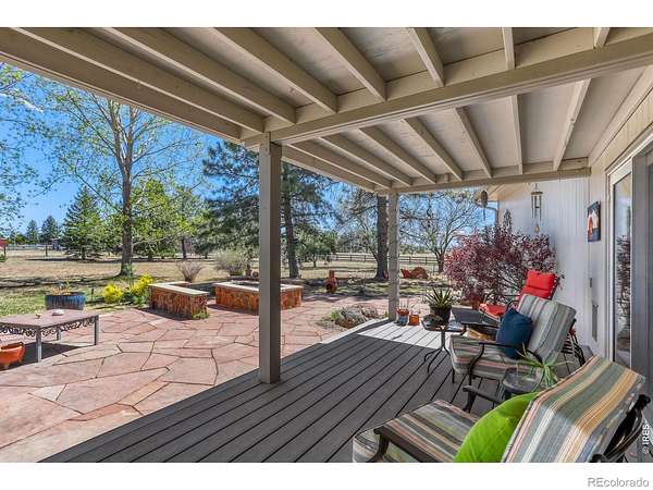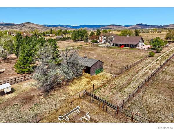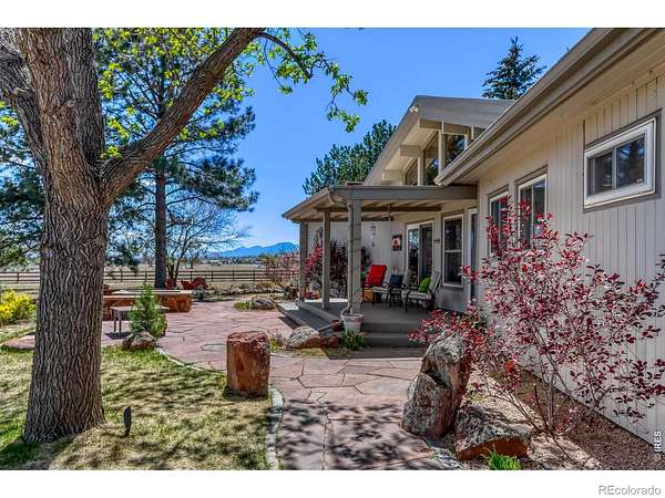 Experience the perfect blend of privacy, space, and breathtaking natural beauty at this exceptional Boulder County property. Nestled on 3.93 acres of agriculturally zoned land, this home offers unparalleled mountain views and a peaceful setting that feels worlds away-yet remains conveniently close to town.This 2,410 sq ft residence features 3 bedrooms and 2 beautifully remodeled bathrooms, combining comfort with thoughtful updates. The inviting kitchen is complete with a large island and informal dining area, ideal for everyday living and entertaining. The spacious family room is truly a showstopper, boasting vaulted wood ceilings, walls of windows, and not one but two fireplaces-a gas fireplace and a cozy wood stove-perfect for enjoying Colorado's seasons while taking in the stunning scenery.Step outside to enjoy the covered front porch, expansive patio, and beautifully designed flagstone walkways that wrap around the home, creating multiple outdoor living spaces. Bring the animals with this custom-built barn with two stalls, hay storage, and an adjacent fenced paddock/turnout. Additional features include a 3 car garage, multiple fenced areas, Lefthand Water and two shares of Swede Ditch. Easy access to Longmont and Boulder for commuting convenience. Whether you're seeking a small hobby farm or simply a private retreat with room to breathe, this property delivers the Colorado lifestyle at its finest.