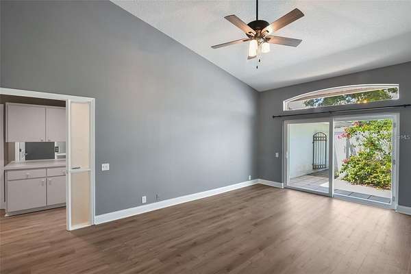 - Ceiling Fans(s), Crown Molding, High Ceilings, Open Floorplan, Solid Wood Cabinets, Stone Counters, Thermostat, Walk-In Closet(s), Window Treatments