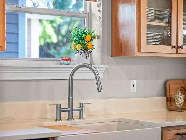Step inside to a home defined by warmth, craftsmanship, and comfort. At its heart is a brand-new custom kitchen, thoughtfully designed with Knotty Alder cabinetry, quartz countertops, seeded glass and cane inset doors, a custom tabletop island, and new stainless steel appliances--perfect for both everyday living and effortless entertaining. Newly refinished solid oak floors, coffered ceilings, and tongue-and-groove woodwork flow throughout the main level, creating rich, inviting spaces.