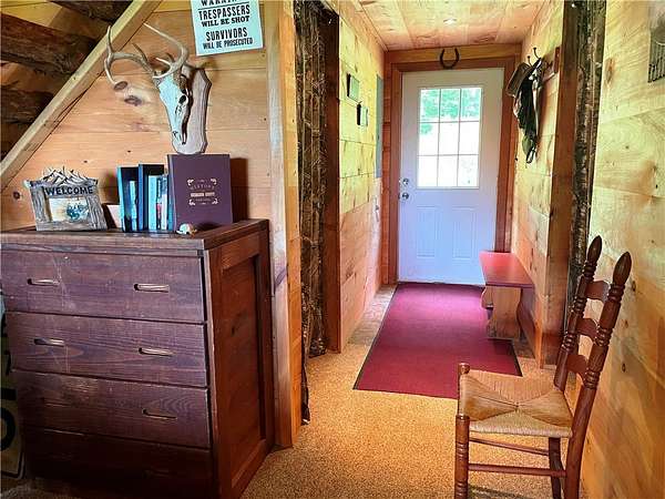 An EXCEPTIONAL recreational property here featuring over 79 acres of stunning mature forest land, natural clearings and strategically placed food plots for wildlife. In addition, the owner has planted dozens of valuable fruit and nut bearing trees. For those seeking land with a water feature, this property has TWO spring fed PONDS and generous frontage on a slate bottom trout stream. The land borders active crop lands and is currently used for a family get-a-way and trophy deer hunting. A true wildlife sanctuary! The cabin is accessed by a long stone base driveway and is completely private. Enjoy long distance VIEWS from the front porch or second story balcony. The first floor features two bedrooms a full bathroom and an open concept kitchen/living/dining room area with woodstove heat. The second story is a loft bedroom area featuring a wide cat walk that leads out to a balcony. This well built cabin complete with recently installed underground electric utility, septic system and private well can be used year round. The land can be used for agriculture having about 14 acres of open grasslands with the balance in mixed mature hardwoods, pine and hemlock trees. Heavily used deer trails with optimum habitat for both deer and turkey. Natural springs feed TWO ponds capable of holding fish and a beautiful pool can be found on the creek for staying cool in the hot summer. A top choice for those looking for a perfect recreational property for ATVs, hiking, hunting, wildlife watching or other recreational pursuits! Located in the geographical center of beautiful Upstate New York just 10 minutes to the County Seat in Norwich for hospital and health care, restaurants, shopping, arts and entertainment. And 30 minutes to Oneonta. Contact us for your private showing, you wont be disappointed!