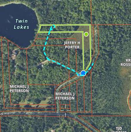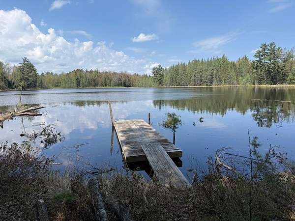4-Acre Lot on Private Twin Lake - Quiet, Secluded, and Full of Potential?. Discover the perfect Northwoods escape with this 4-acre lot on the quiet, private Twin Lake, offering 28 feet of depth and a peaceful setting surrounded by nature. Twin Lake is known for great fishing, with crappie, bluegill, and northern pike.? The L-shaped lot includes a cleared lakeside area with a dock, hand pump well, outhouse, and an old trailer with power already on site-ideal for weekend getaways or a basecamp while you build your dream home or cabin.? The tall pines, natural rock outcroppings, and borders with national forest land provide an unbeatable sense of privacy and a true "up north" feel. Located at the end of a dead-end road, you'll enjoy unmatched peace and seclusion.? Roughly half the property lies across Kate Pier Dr., offering potential future development or splitting opportunities-check with local zoning for details.? Private camping retreat, a place to build a home or cabin.