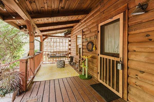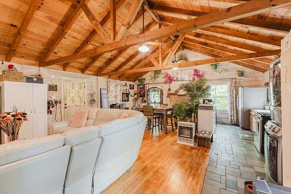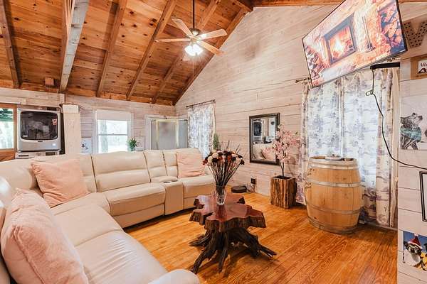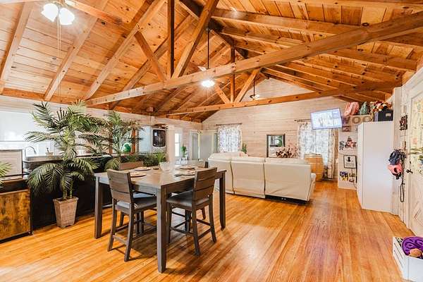 Est $1,136/moUnique Property ... Little over Three Acres, 720 square feet log cabin. Nice front porch and closed in porch on the back. Hardwood and tile flooring open space ,vaulted ceiling with wood rafters and a wood burning fireplace to make your own. Appliances included. Outside Storage shed, green house, garden boxes, dog pen, RV hook up, fencing all around the property. Enjoy small house living and the great outdoors! Call Kathy for an appointment to take a look at your next home.