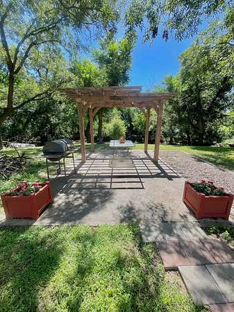Tranquil, meticulous home nestled on peaceful Flag Creek! This home features 3 bedrooms & 2 1/2 baths with the primary suite on the bottom floor. Off the primary suite is a cozy sun room where you can take in all the breathtaking views of Flag Creek & the park like nature setting that surrounds this beautiful home! Imagine walking out your back door to fish, wade your feet in the water or just sit & soak up the quiet Hill Country evenings as you sit around the fire pit! The .95 ac property featuring the home, also comes with the additional 1.14 property across the creek totaling the entire 2.1 ac estate & may be purchased separately. This one is a must see!