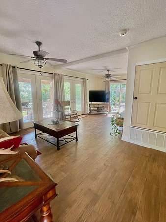 Est $2,884/moTranquil, meticulous home nestled on peaceful Flag Creek! This home features 3 bedrooms & 2 1/2 baths with the primary suite on the bottom floor. Off the primary suite is a cozy sun room where you can take in all the breathtaking views of Flag Creek & the park like nature setting that surrounds this beautiful home! Imagine walking out your back door to fish, wade your feet in the water or just sit &soak up the quiet Hill Country evenings as you sit around the fire pit! The .95 ac property featuring the home, also comes with the additional 1.14 property across the creek totaling the entire 2.1 ac estate & may be purchased separately. This one is a must see!